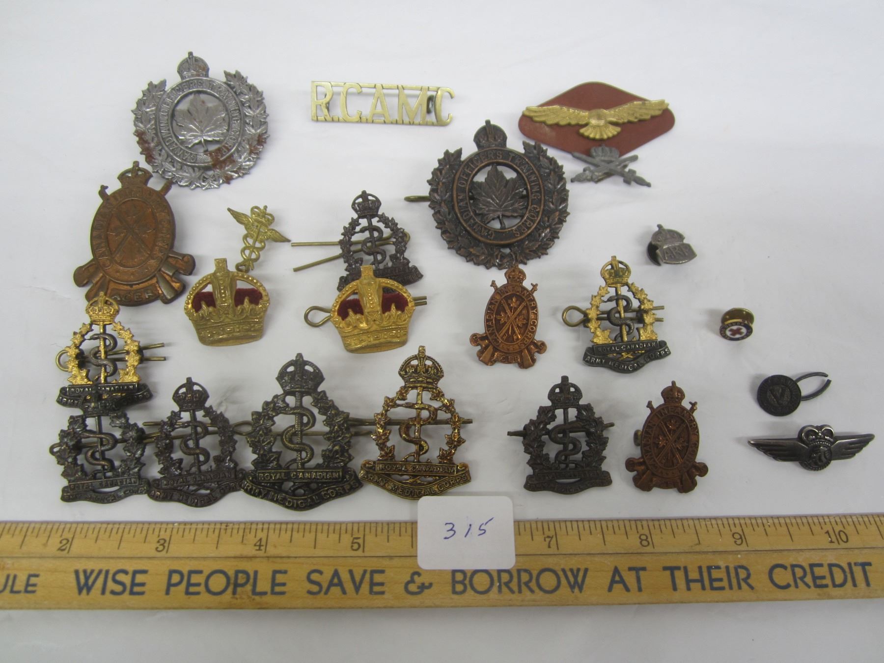 Large Lot of Canadian World War 2 Cap Badges Ect.