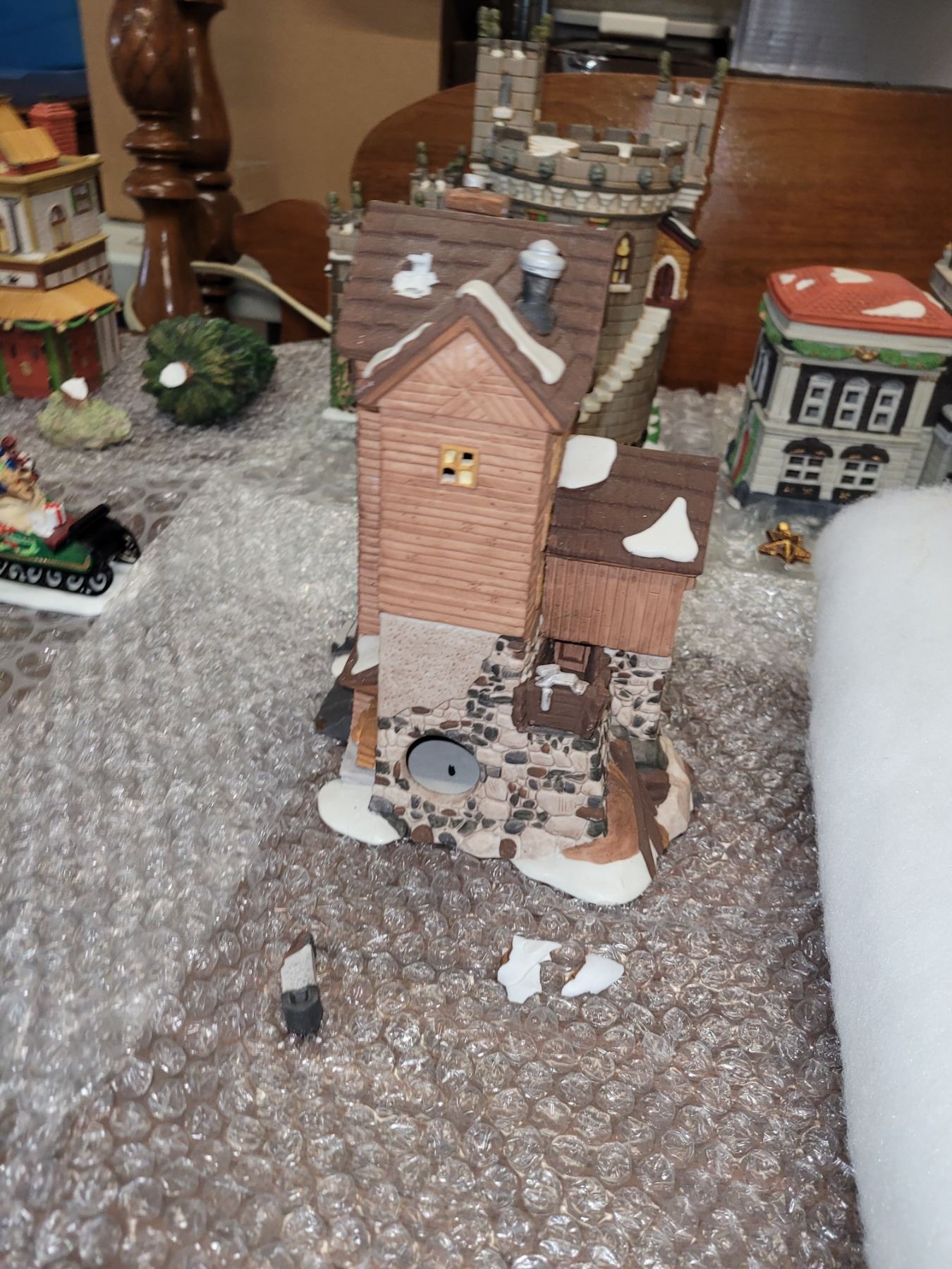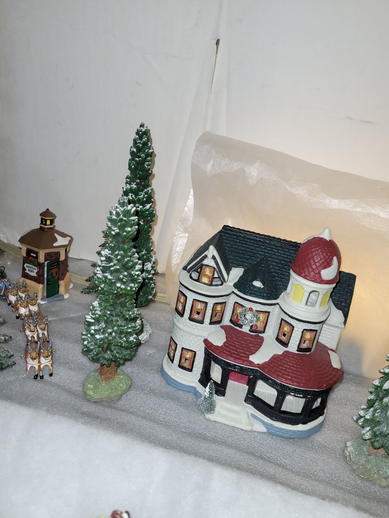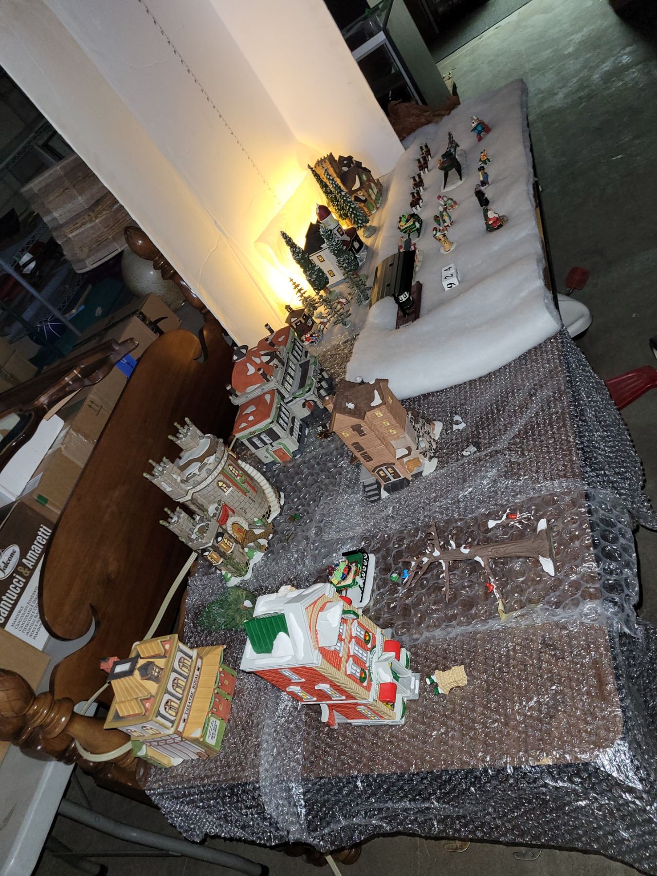 Large Lot of Dept 56 Christmas Decor + Comes with Long Light - Items on White Fluff and Behind It are Problem Free - All Others have Issues, Almost Can Be Repiared - A lot of value here