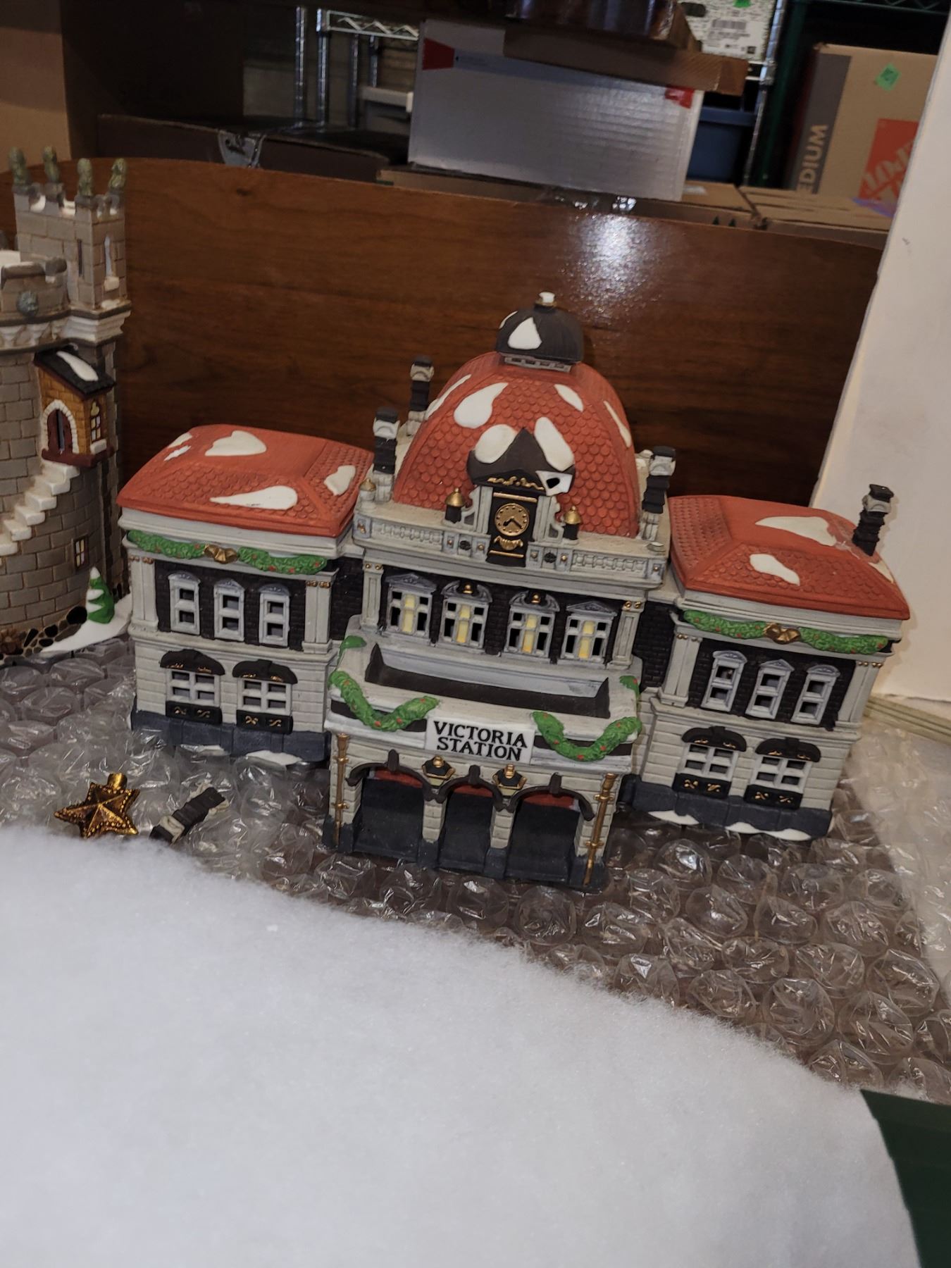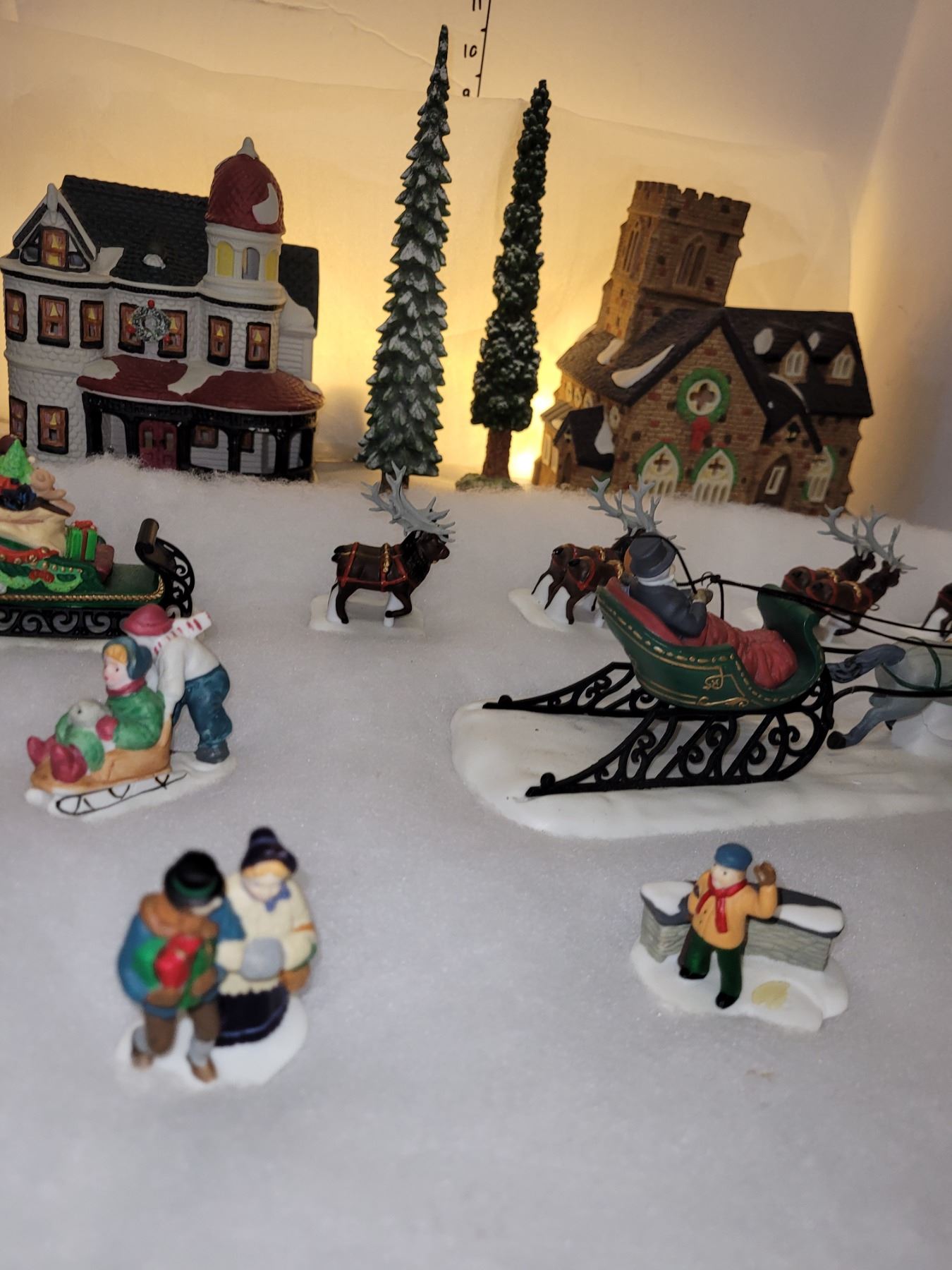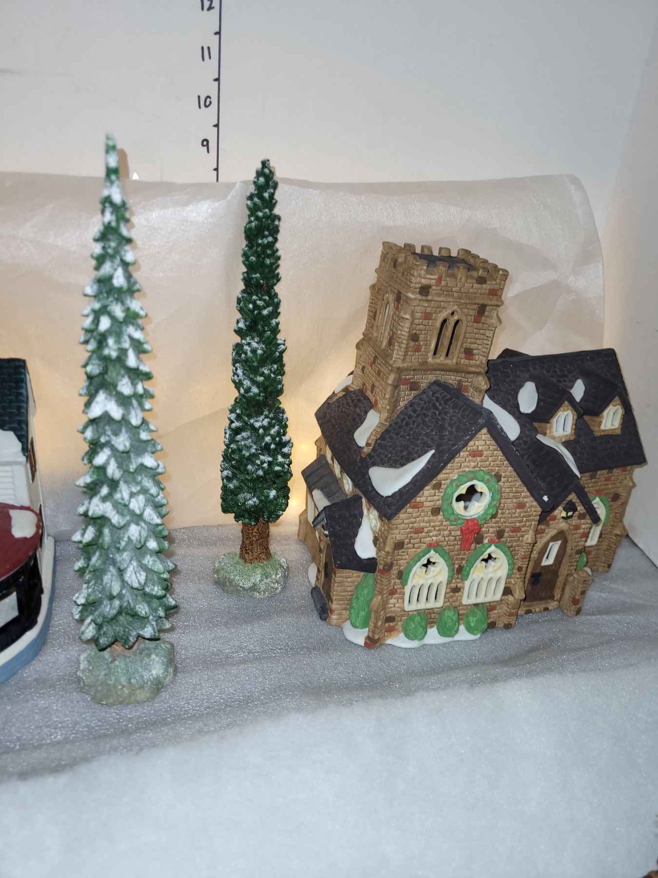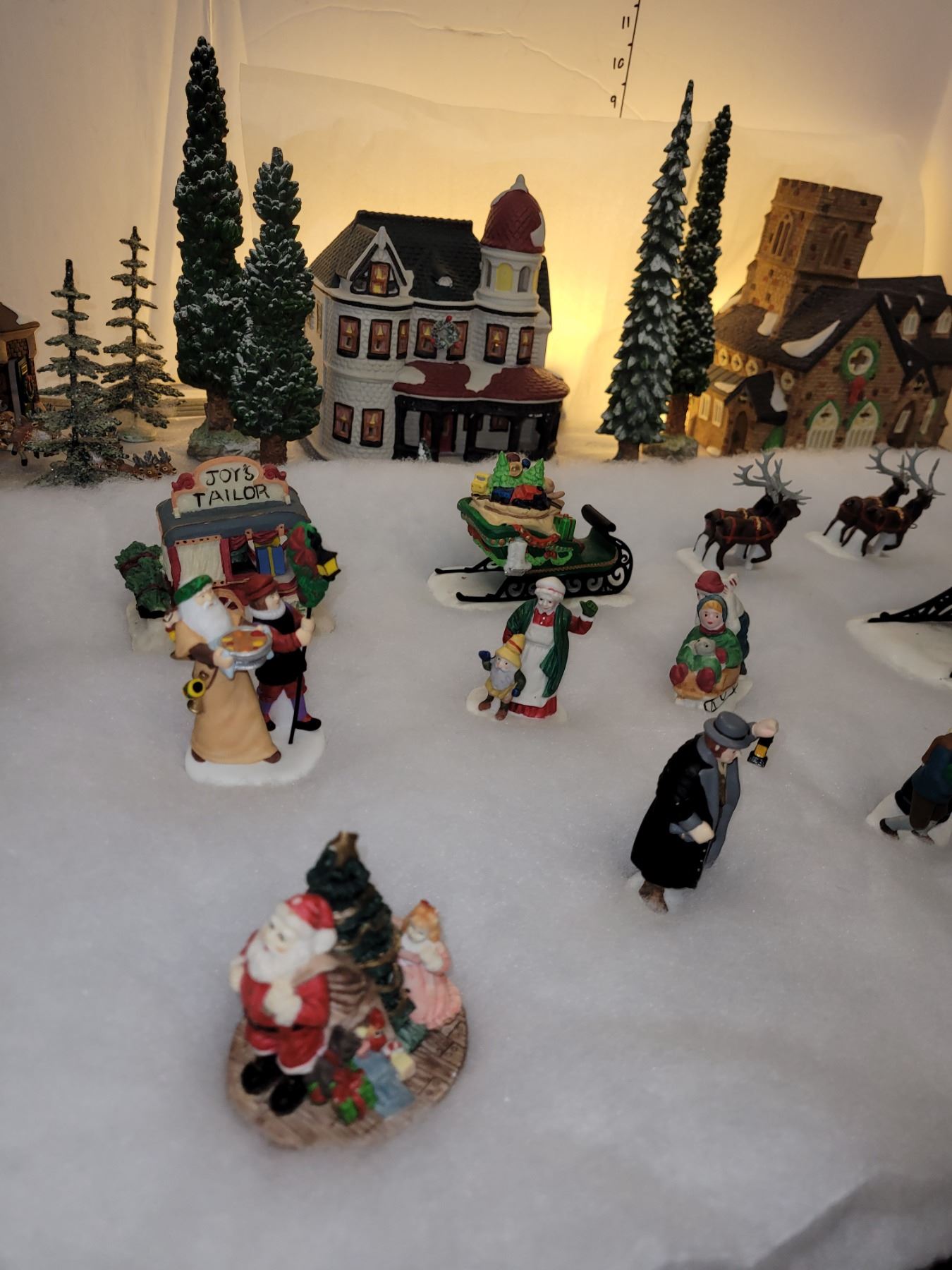 Large Lot of Dept 56 Christmas Decor + Comes with Long Light - Items on White Fluff and Behind It are Problem Free - All Others have Issues, Almost Can Be Repiared - A lot of value here