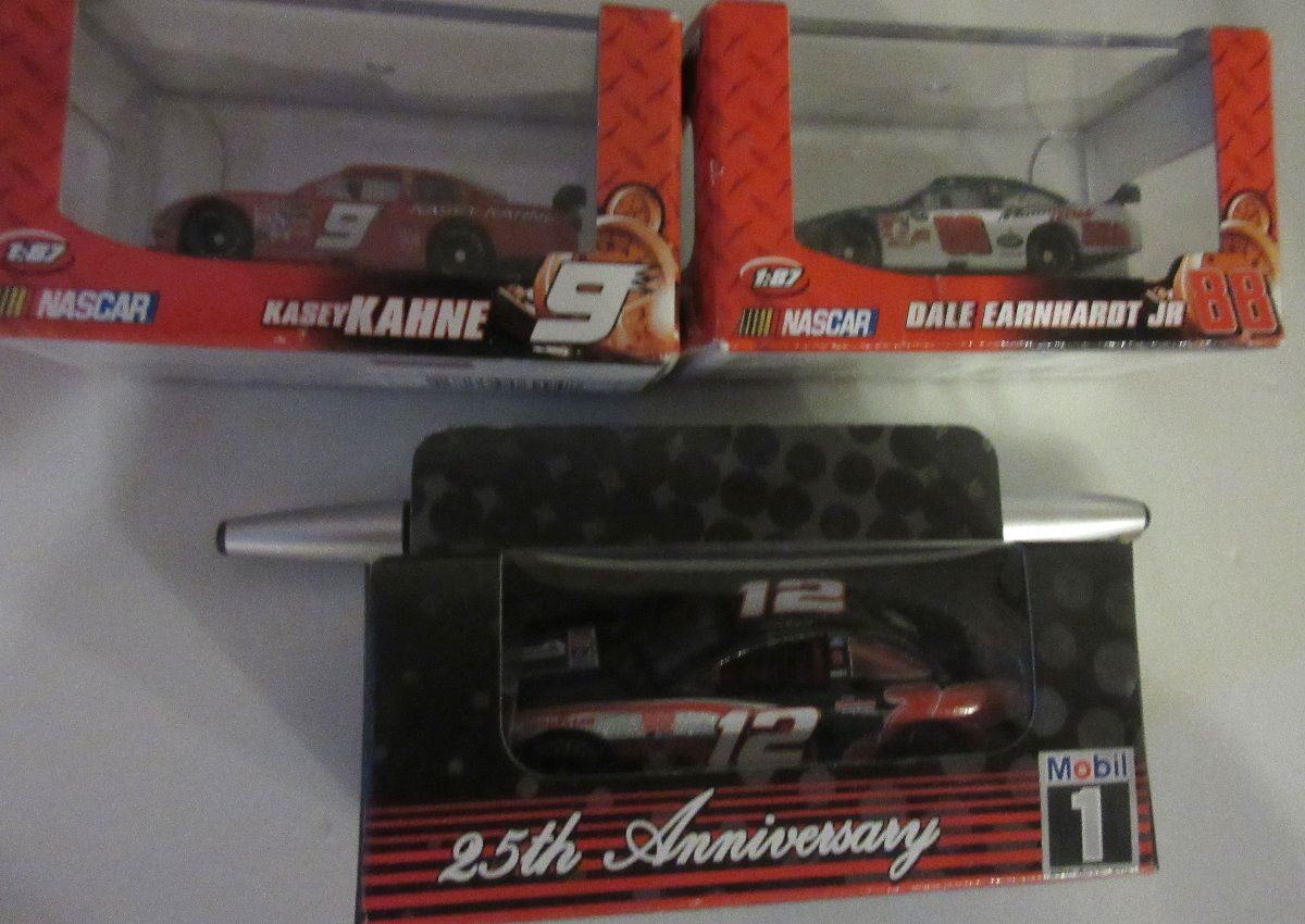 6 Nascar 1:87 Winners Circle - Kasey Kane - Carl Edwards -Kyle Busch - Tony Stewart -Jeff Gordon - Dale Earnhardt Jr Mobil 1 25th Anniversary Jeff Gordon 3 Maisto Superior Trucks Red in box ; 1 Collectors Quality Model coupe : 1 Brickyard Authentic Indianapolis Motor Speedway Official 1988 Ford Runabout Tanker 1999 the Ertl C Company Stock # 19701 : Ertle Collections Anheuser=Much Budweiser 1951 Delivery Van Replica 1155 :RMP Cruiser Crown Victoria : Redd Diecast truck displayed in plastic showcase