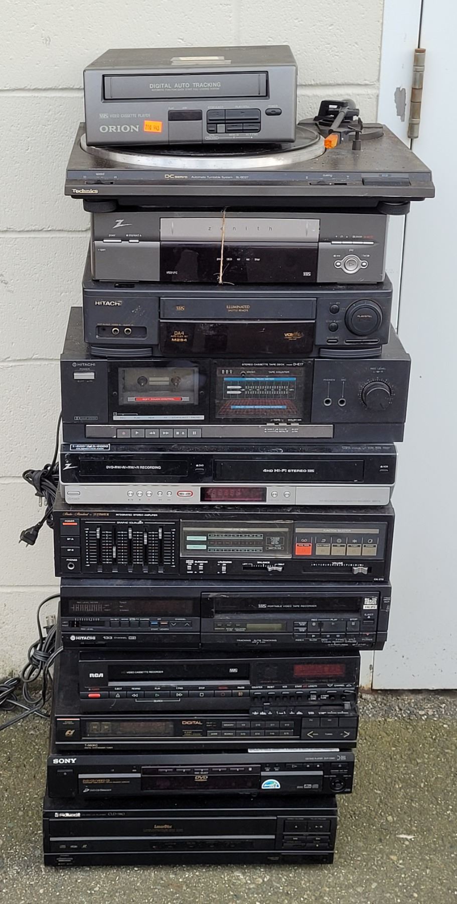 Large Lot of Electronics w/ Amplifier, VCR, DVD Players, & More