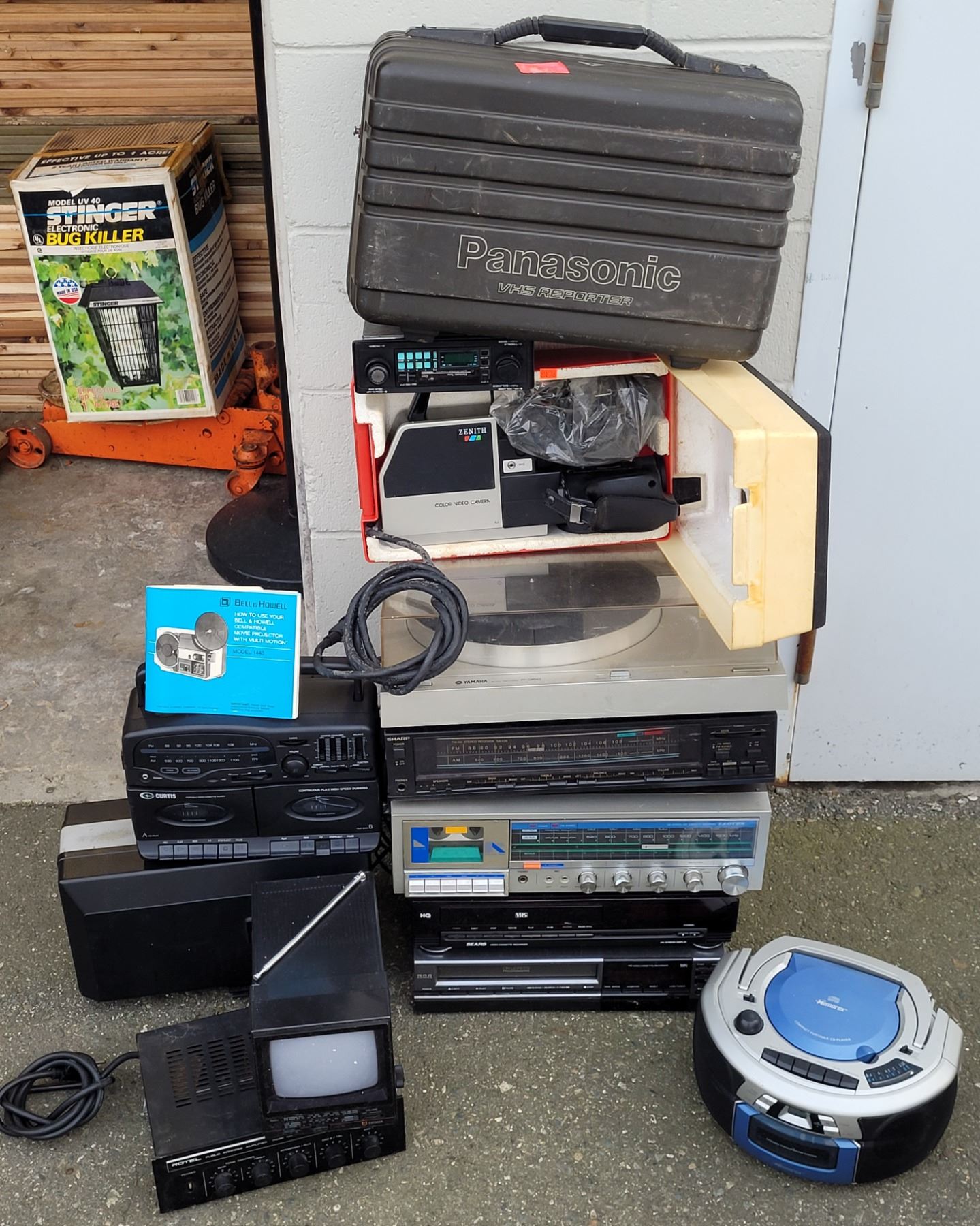 Large Lot of Electronics w/ Cassette Tape Player, FM/AM Stereo Receiver, Zenith Video Camera, & More