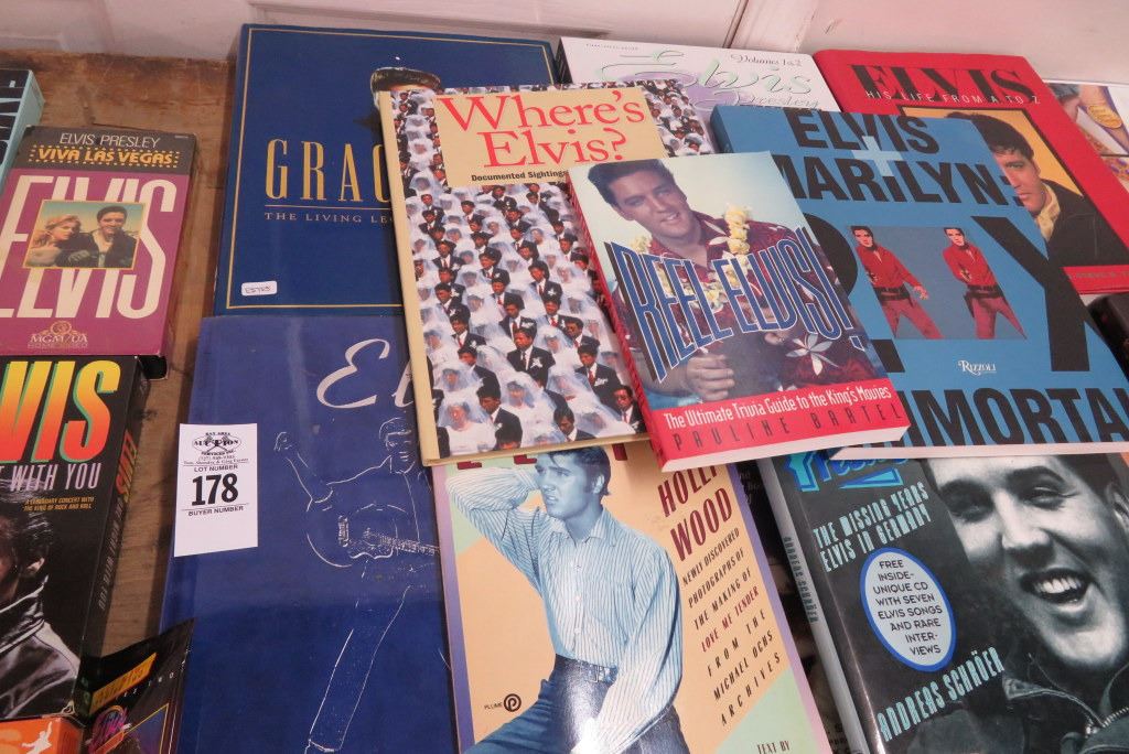 Large Lot of Elvis Books/CD's/DVD's & VHS Tapes