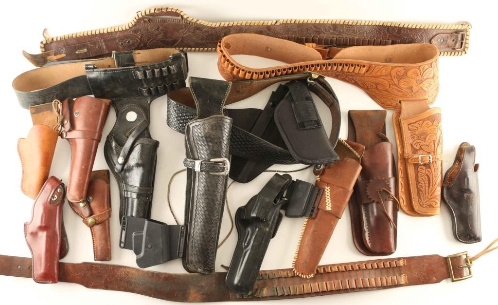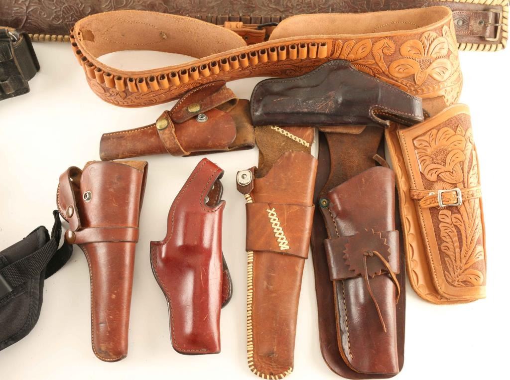 Includes several leather and webbing holsters,and tooled leather gun rigs.