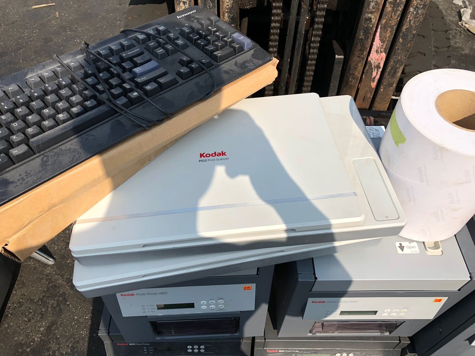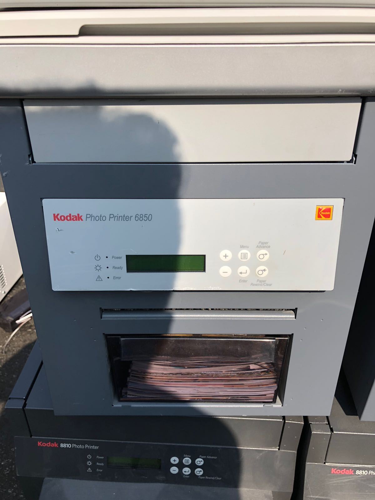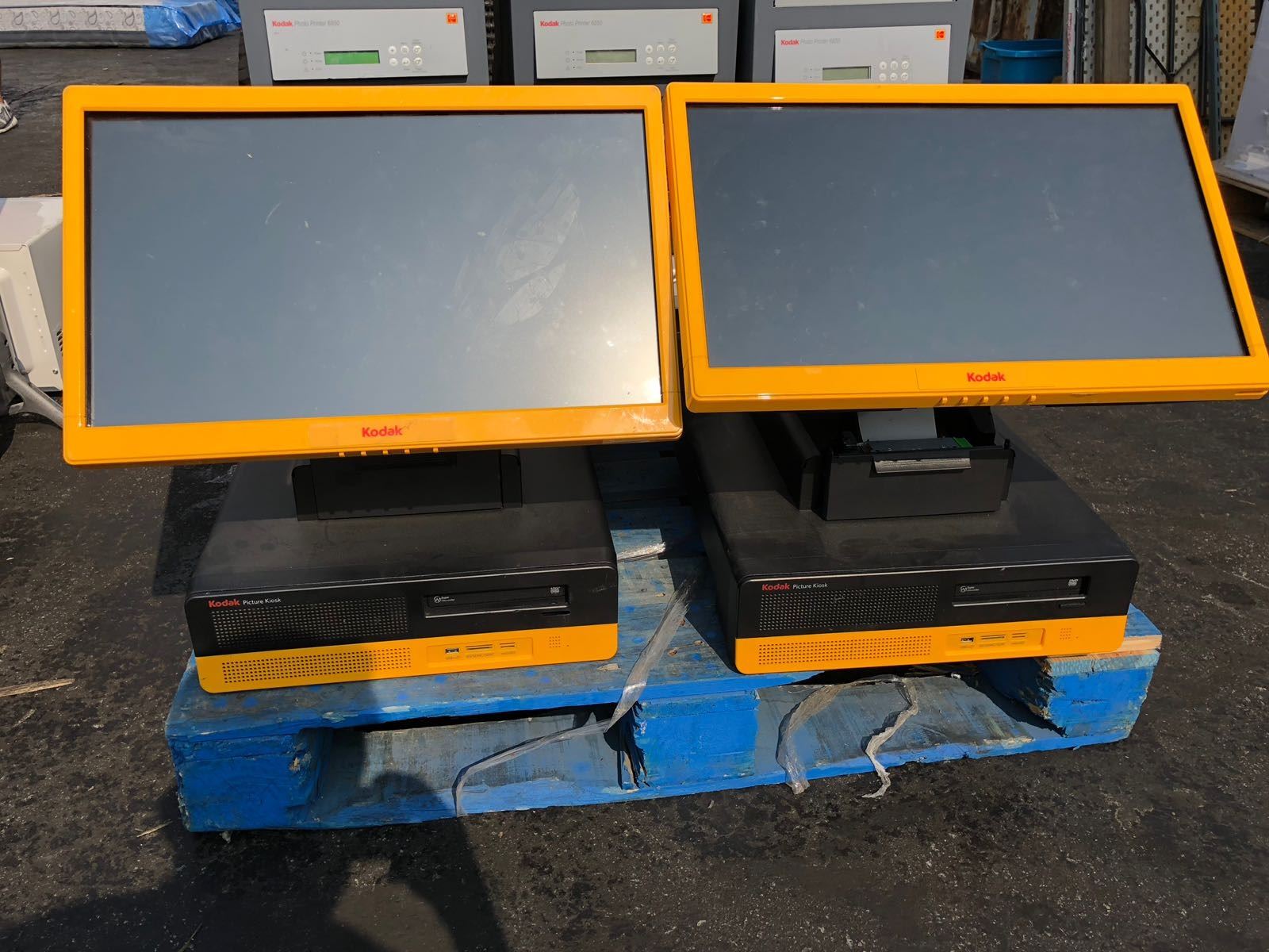 2 x Kodak Picture Kiosk Screens, 3 Kodak Photo printers - 6850, 3 x Kodak 8810 Photo Printer, 2 x Kodak PS12 Print Scanners.