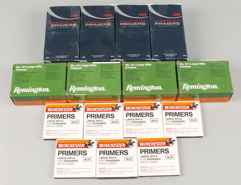 Includes: 4000 Remington # 9 1/2, 4000 CCI #250's, and 700 Winchester large rifle primers.
