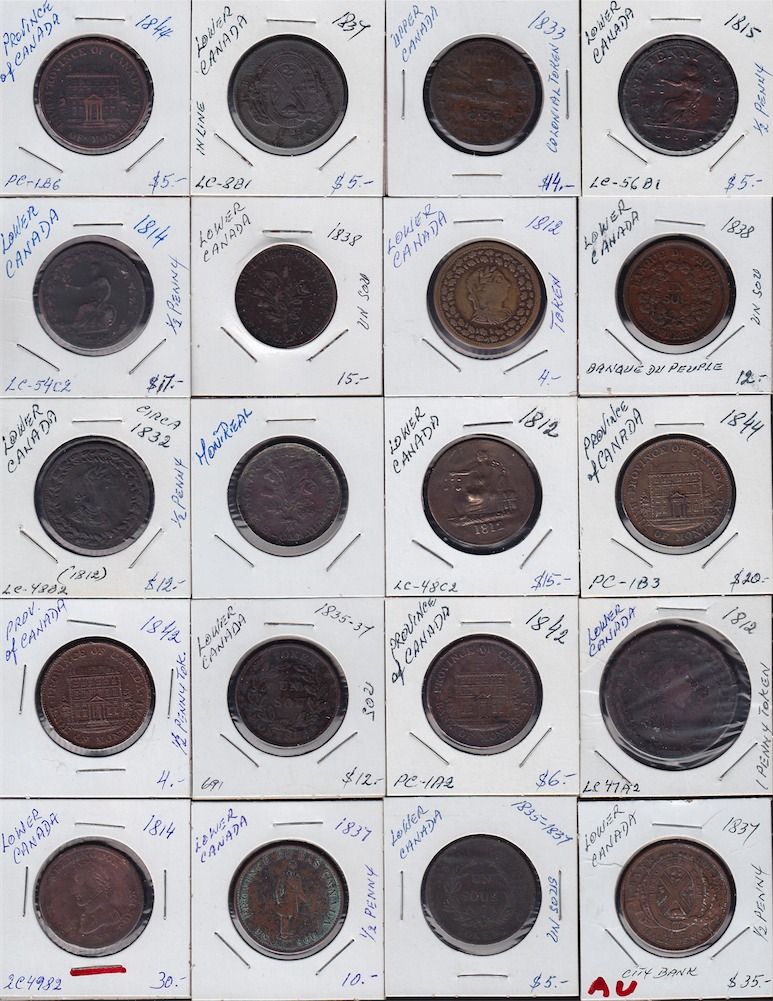 Large Lot of Lower Canada Tokens - Ideal for study, this lot is a diverse mix of tokens from Lower