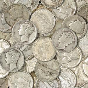 A lot of 100 Mercury dimes, various dates 1930-40's. Circulated coins, unsearched.