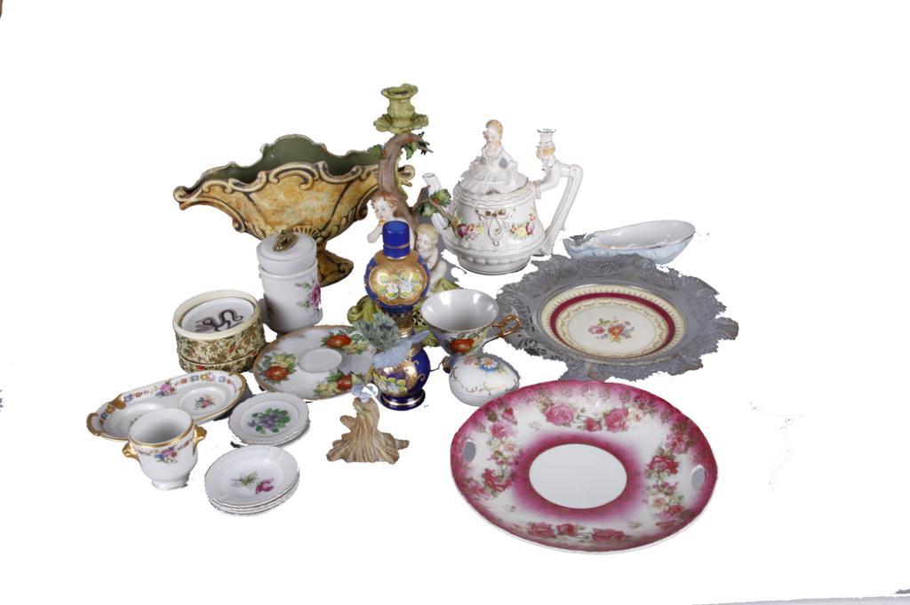 Large Lot of Porcelain Items Consisting of figurines, teapot, vases, plates, egg holders, candle hol