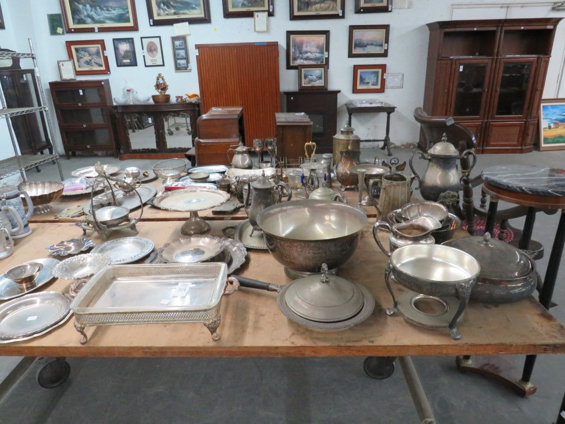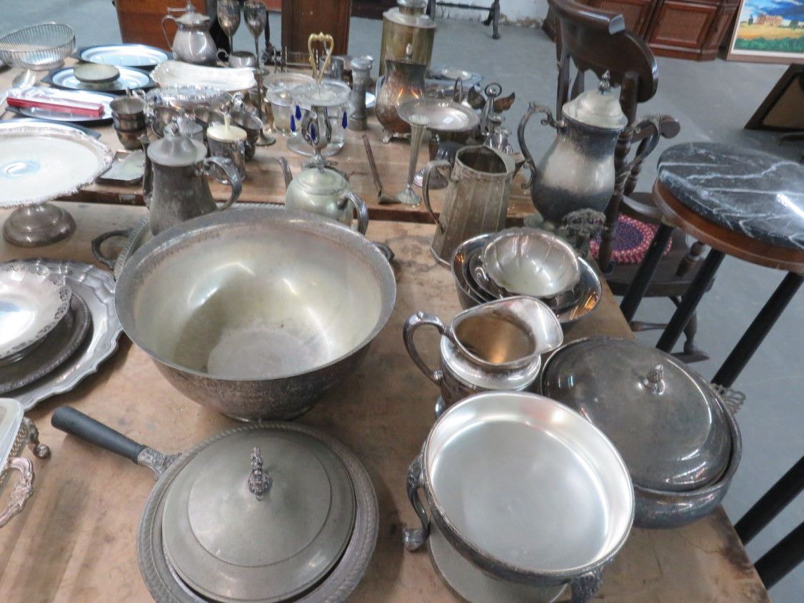Large Lot of Silverplate Dishes, Pitchers, Table Items