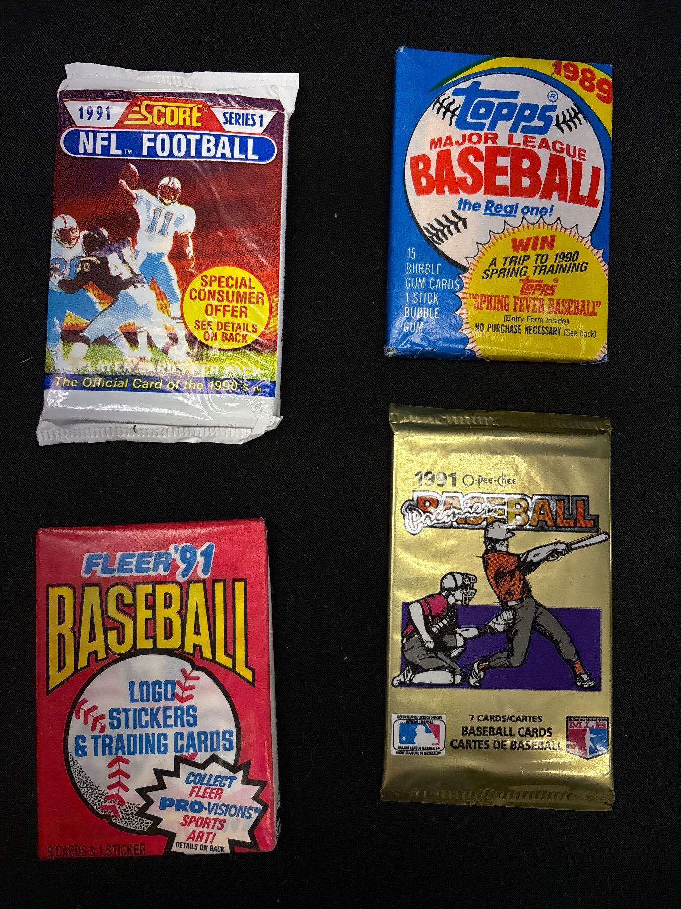 Large Lot of Unopened Baseball and Football Trading Card Packs O-Pee-Chee, Fleer, Topps