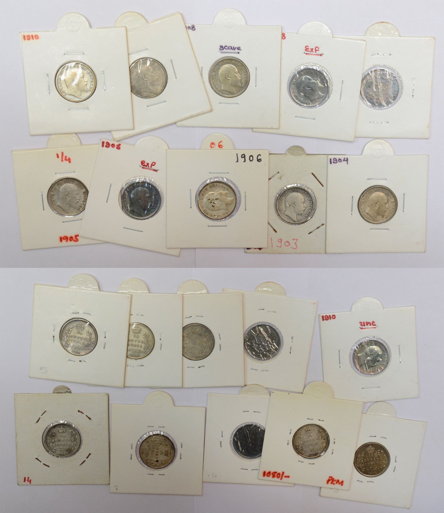 Large Lots: A group of 10 Edward VII silver ¼ rupee, includes 1903, 1904, 1905 (2), 1906, 1907, 1908 (2) and 1910 (2), 2x Bombay and 8x Calcutta mint. (10 coins)
