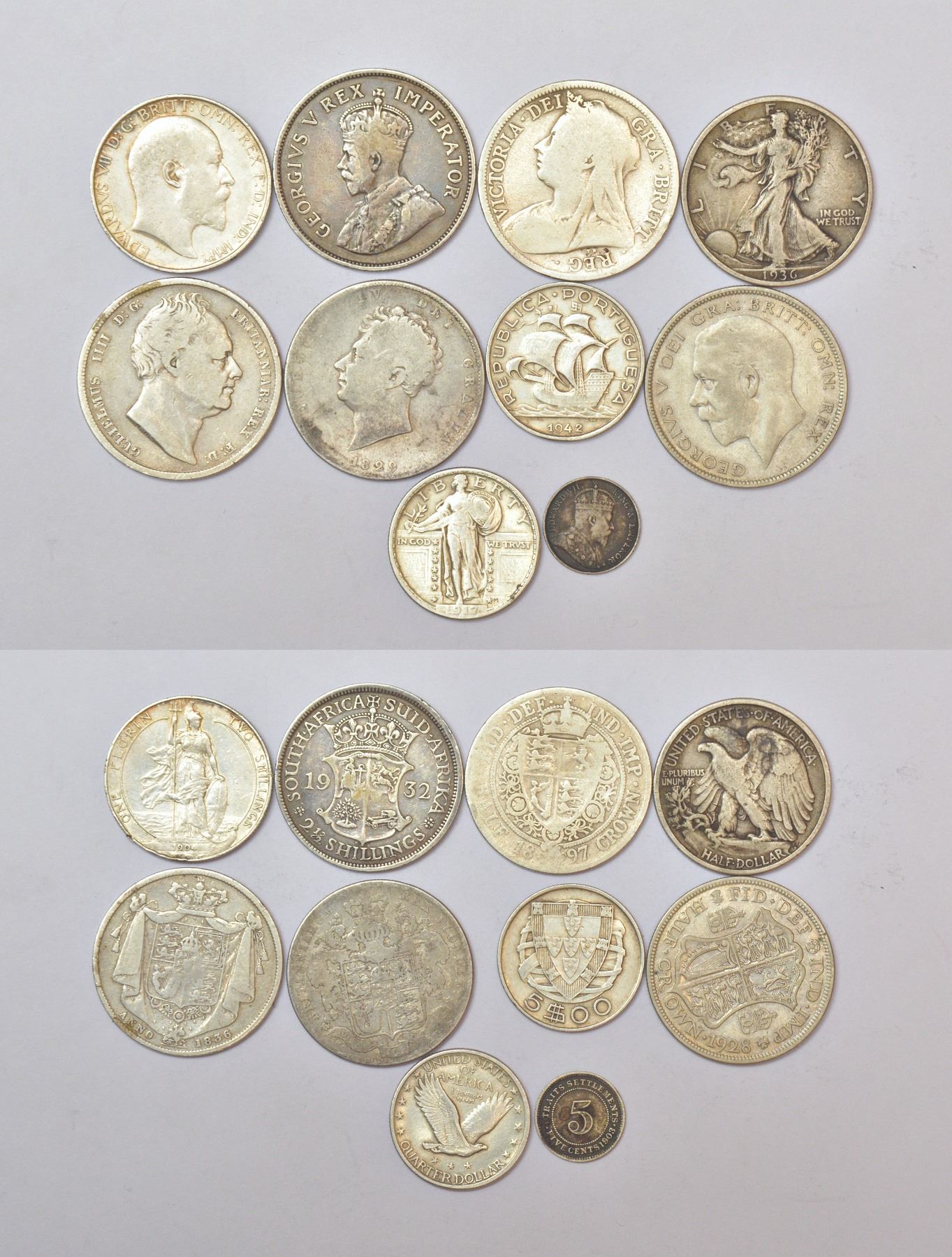 A group of 10 foreign silver coins, includes British Settlement, Great Britain, Portugal, South Africa and United States of America, various denomination and types. (10 coins)