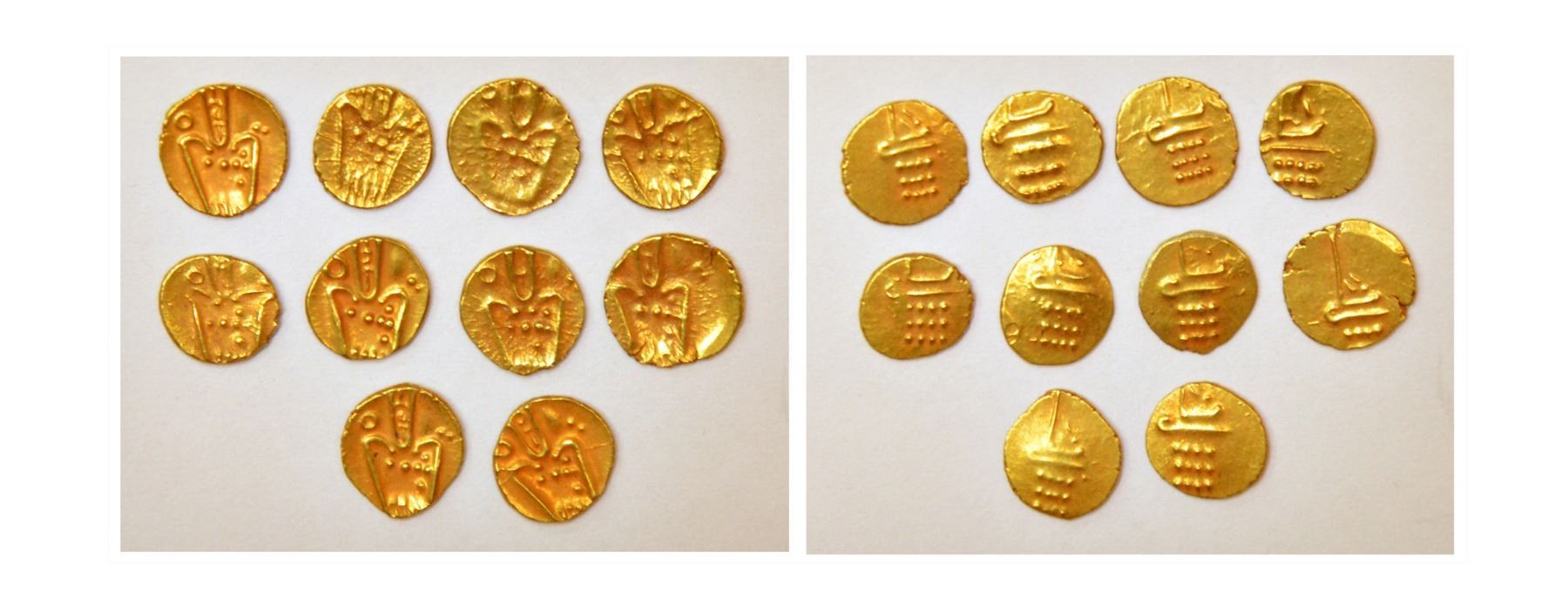A group of 10 gold Veera Raya fanam, imitative design of Hoysala coins. (10 coins)