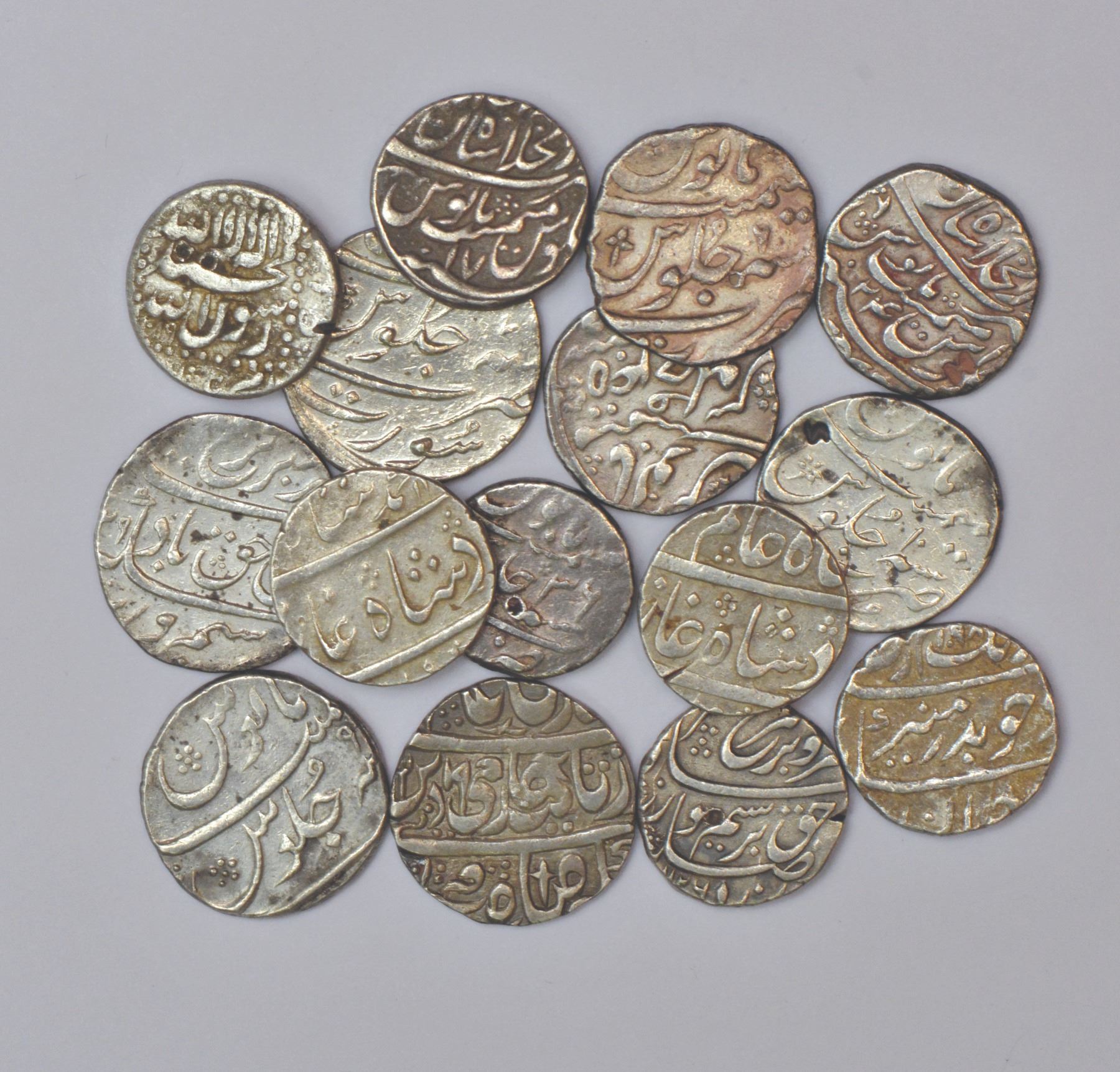A group of 15 Mughal silver rupee, various rulers and mints. (15 coins)