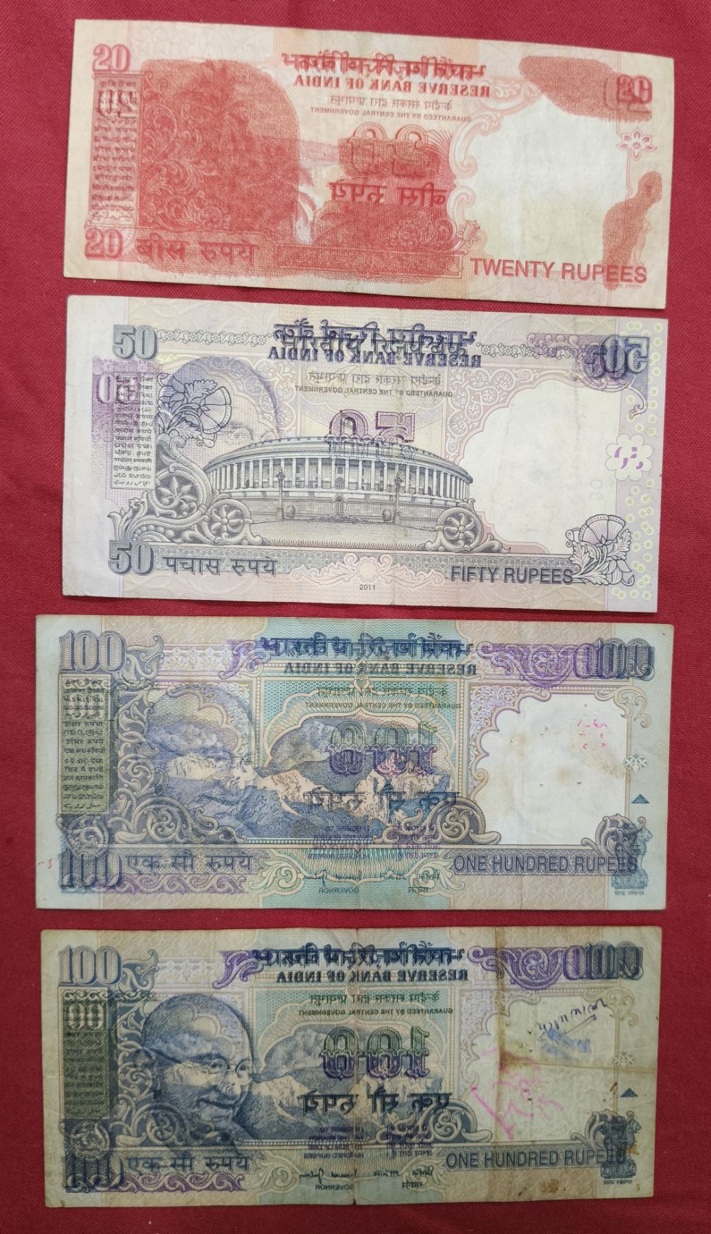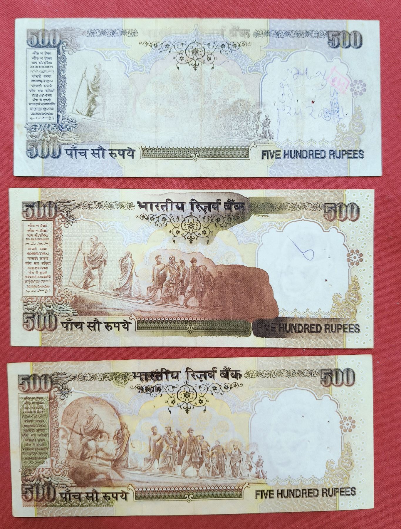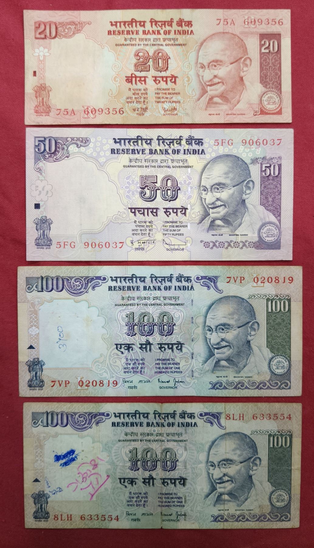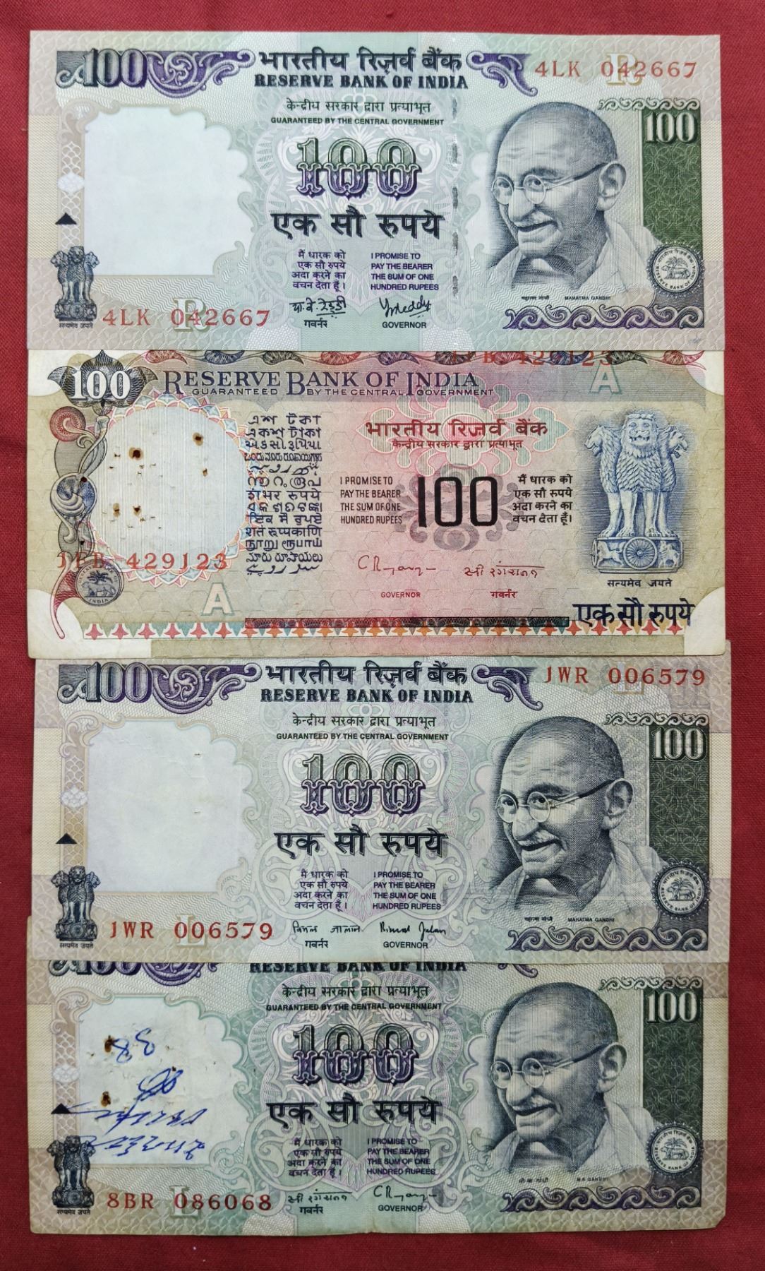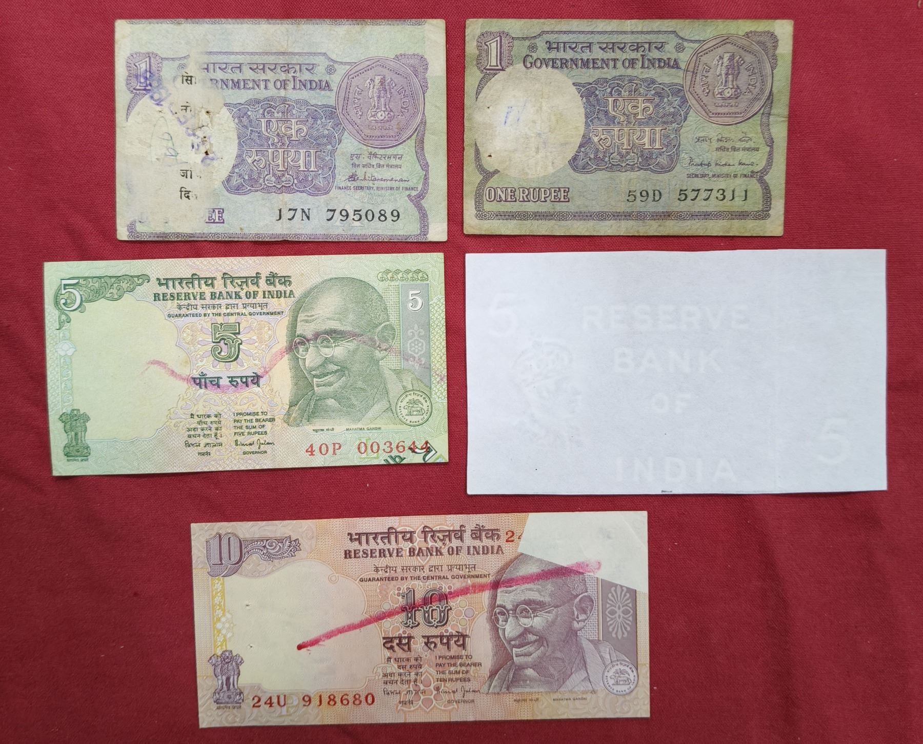 Large Lots: A group of 16 misprint notes, 1x George VI watermark paper, 2x 1 rupee, 1x 5 rupees, 1x 10 rupees, 1x 20 rupees, 1x 50 rupees, 6x 100 rupees and 3x 500 rupees, various Governors signed and various type of misprints. (16 notes)