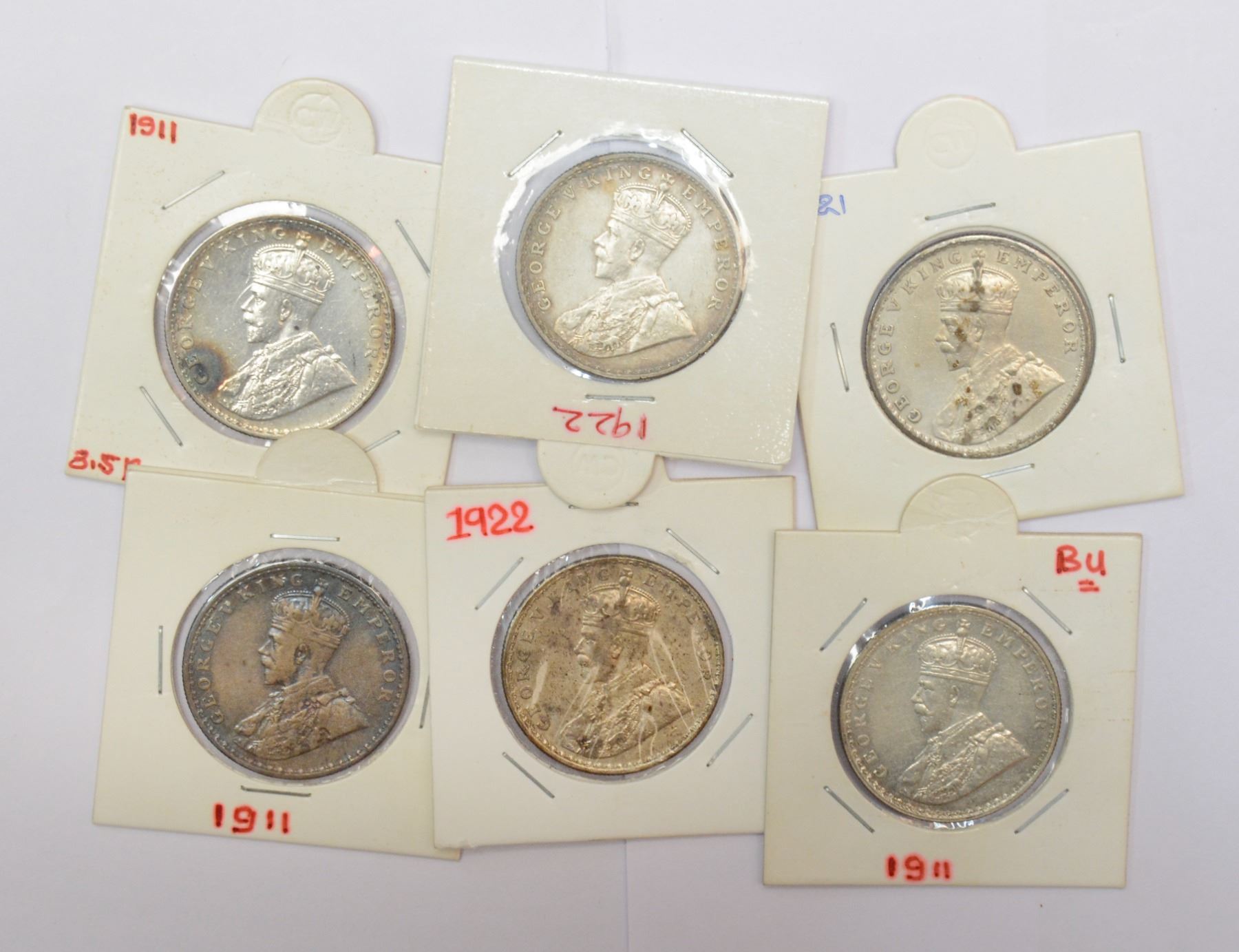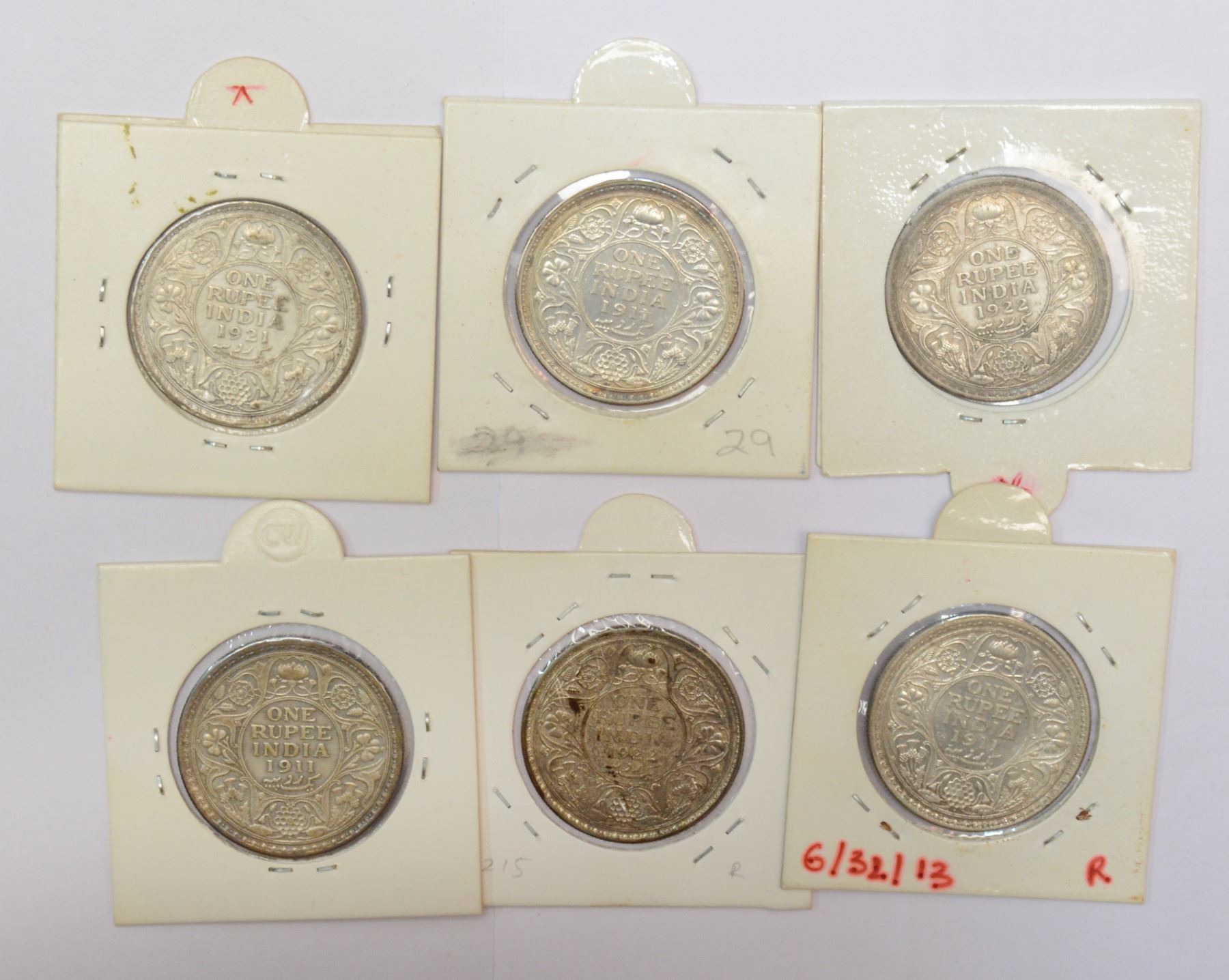 Large Lots: A group of 6 George V silver rupee, includes 1911 (3), 1921 and 1922 (2), Bombay mint. (6 coins)