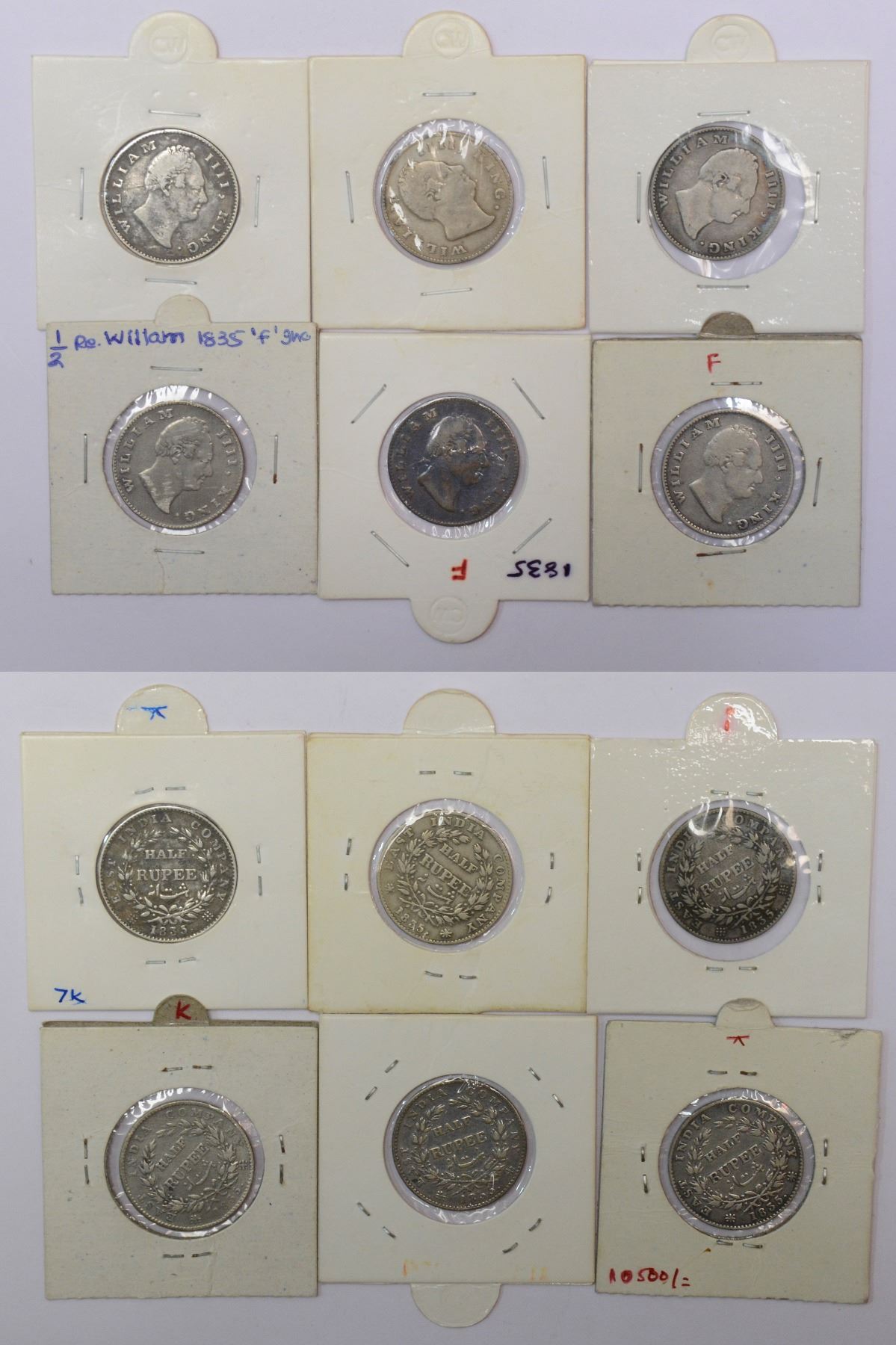 Large Lots: A group of 6 William IV silver ½ rupee, all dated 1835, includes 3x Bombay and 3x Calcutta mint, various types. (6 coins)