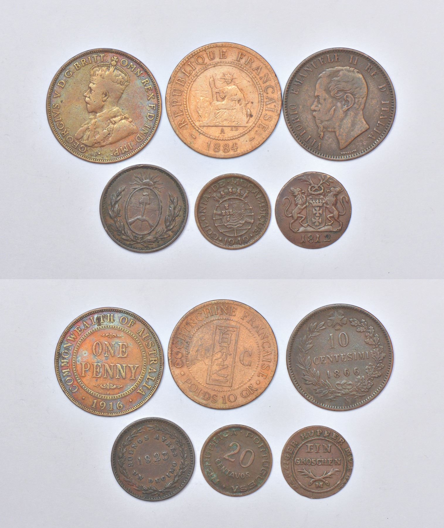 A group of 6 foreign copper coins, various denomination, dates and types. (6 coins)