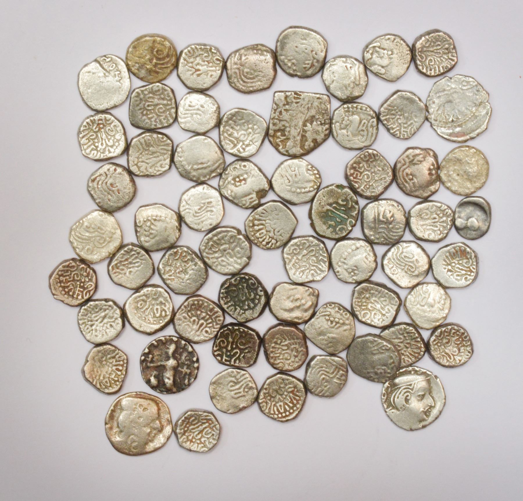 Large Lots: A group of 76 Ancient silver and billon coins, includes mostly Gupta, different weights and types. (76 coins)