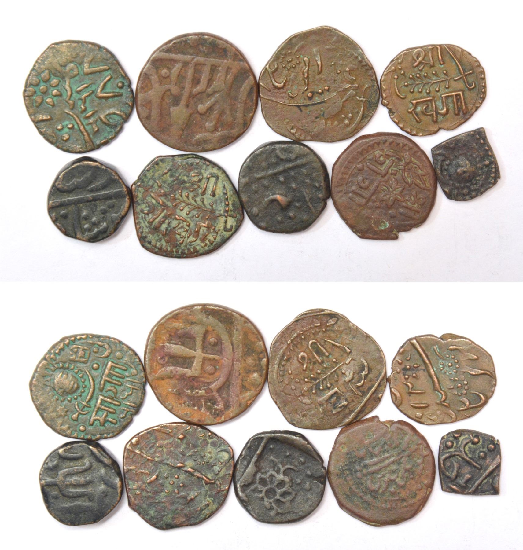 Large Lots: A group of 9 Princely state copper coins, different types and denominations. (9 coins)