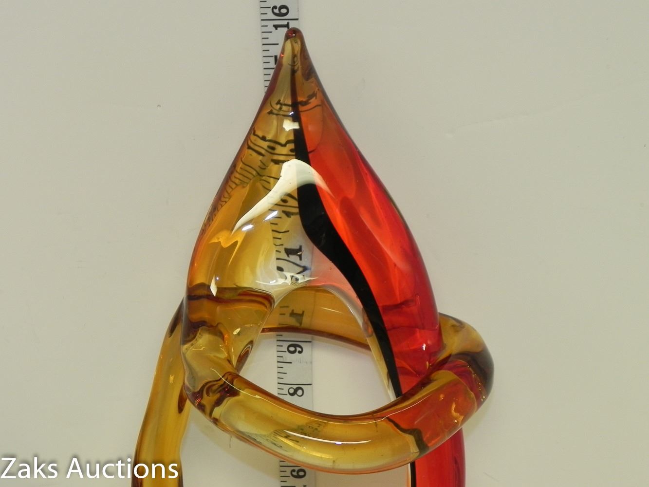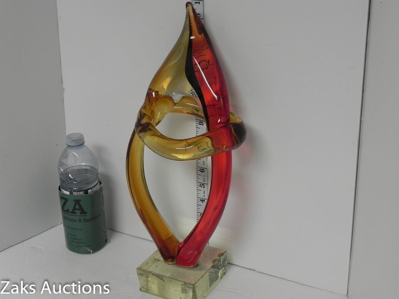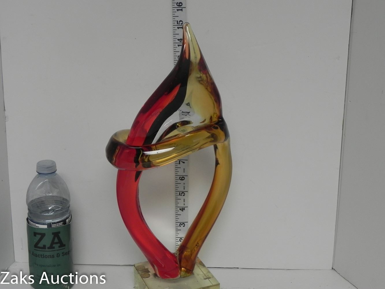 Large MCM Yellow and Red With Black Glass Statue. Base possess some damage