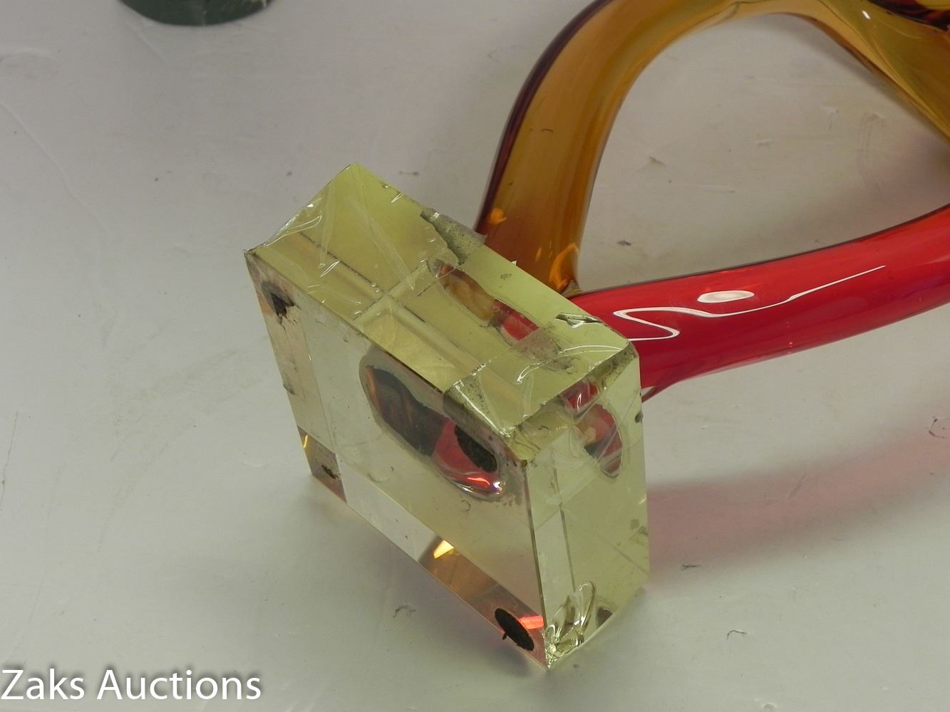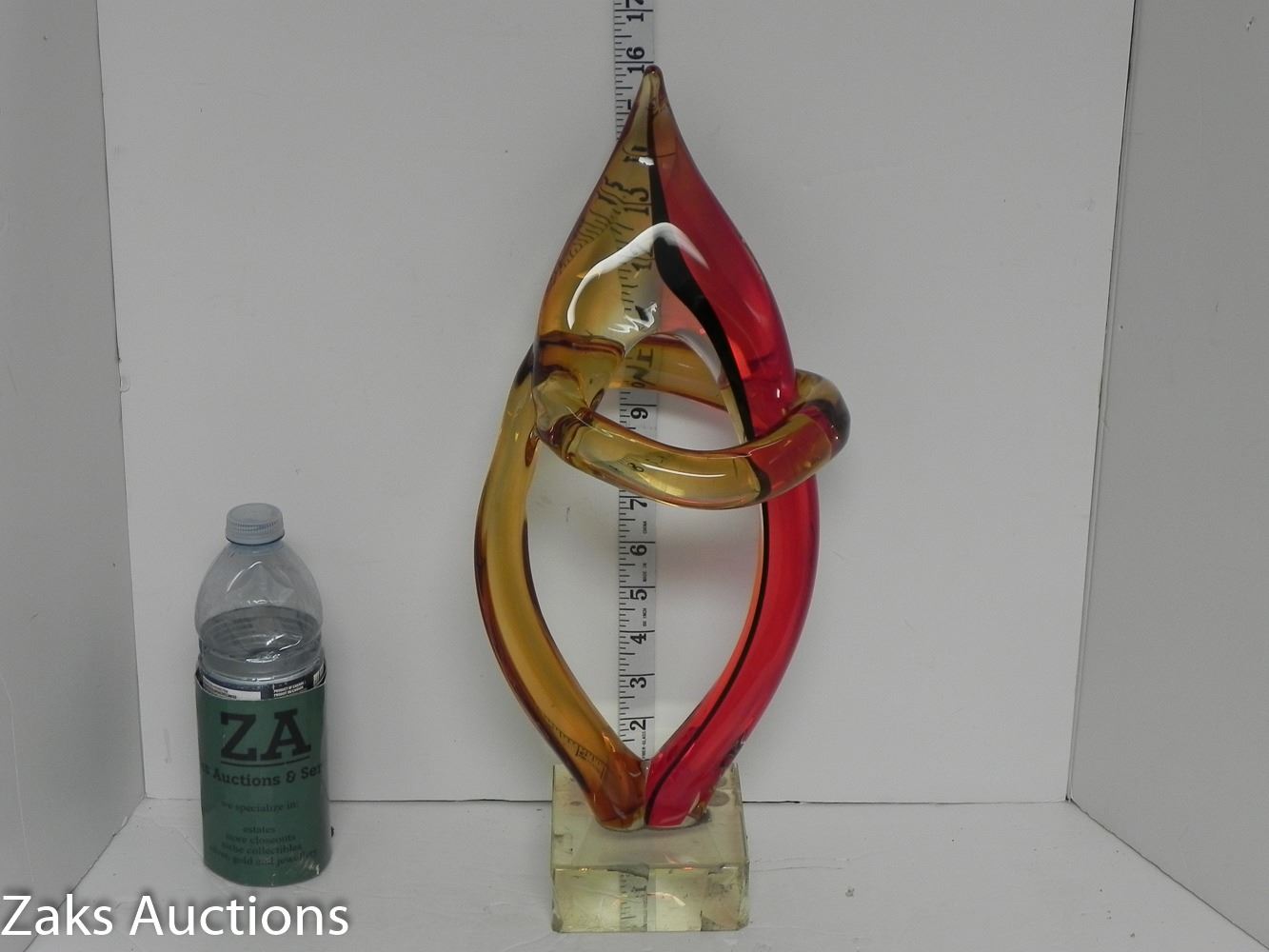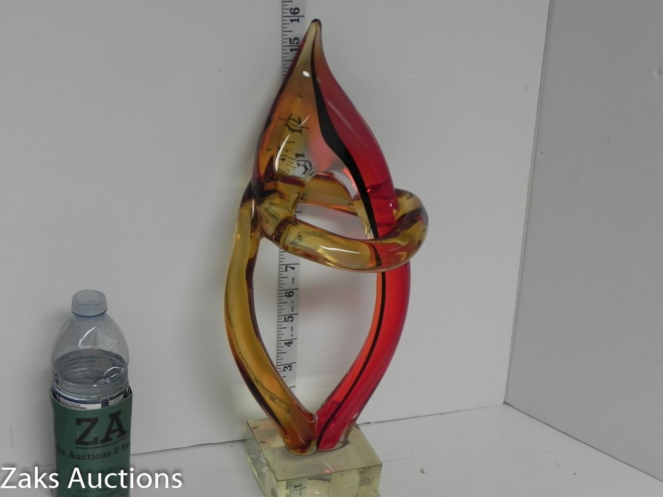 Large MCM Yellow and Red With Black Glass Statue. Base possess some damage