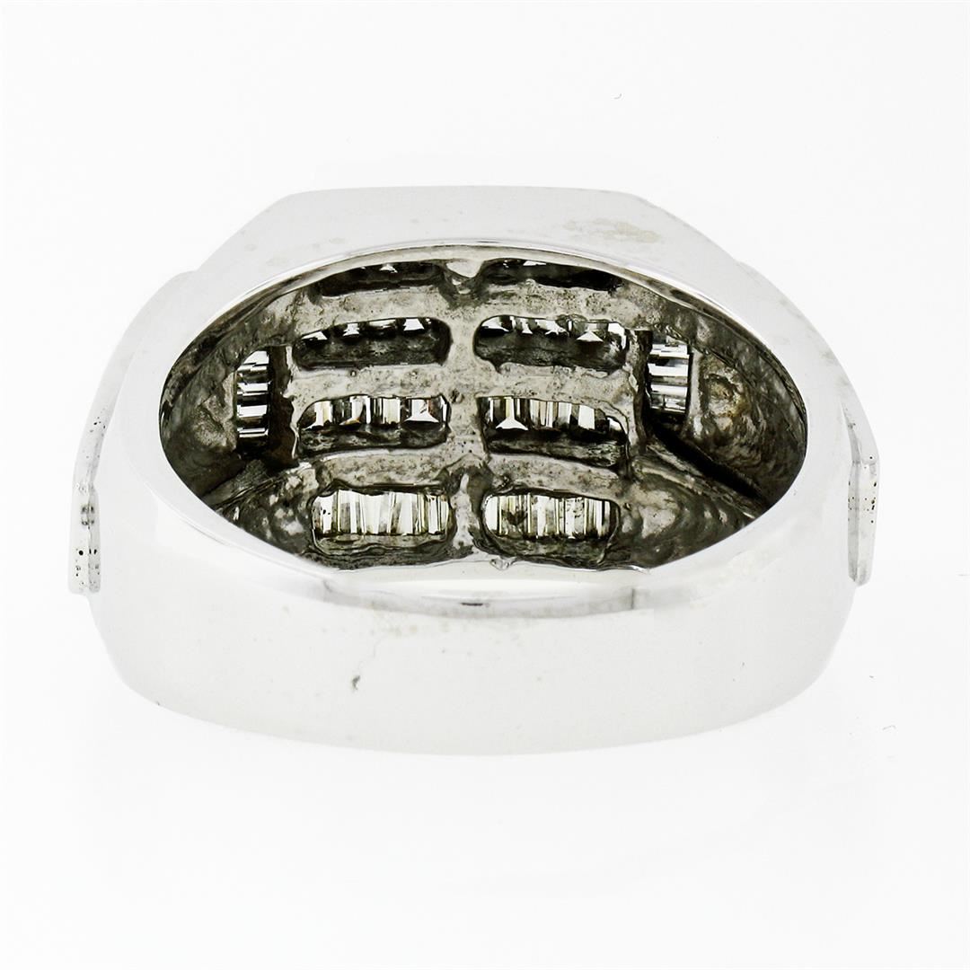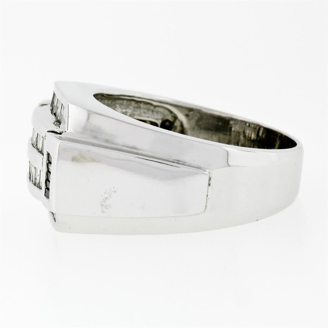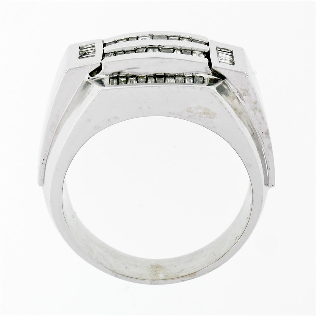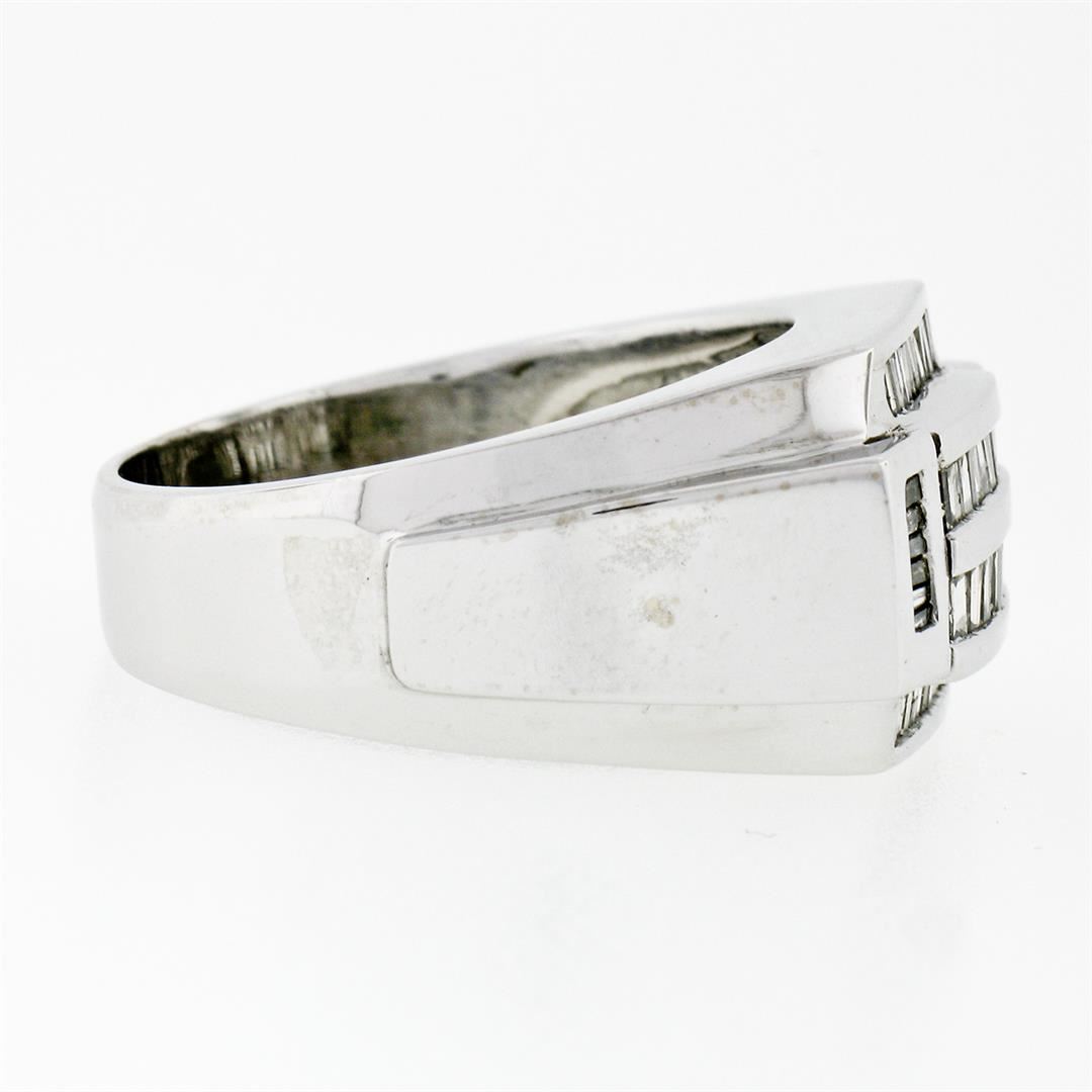 One Large Mens 14K White Gold 1.10ctw Tapered & Straight Baguette Diamond Band Ring. Item Details: Material: Solid 14K White Gold, Weight: 16.69 Grams, Stone(s): (49) Natural Genuine Diamonds - Tapered & Straight Baguette Cut - Channel Set - SI2/I1 Clarity - J/K Color - 1.10ctw (exact), Ring Size: 11.0 (We can custom size this ring.), Ring Width: 13.50mm (top of the ring), 5.50mm (bottom of the shank), Ring Height: 6.35mm rise off the finger, Condition: Like New!