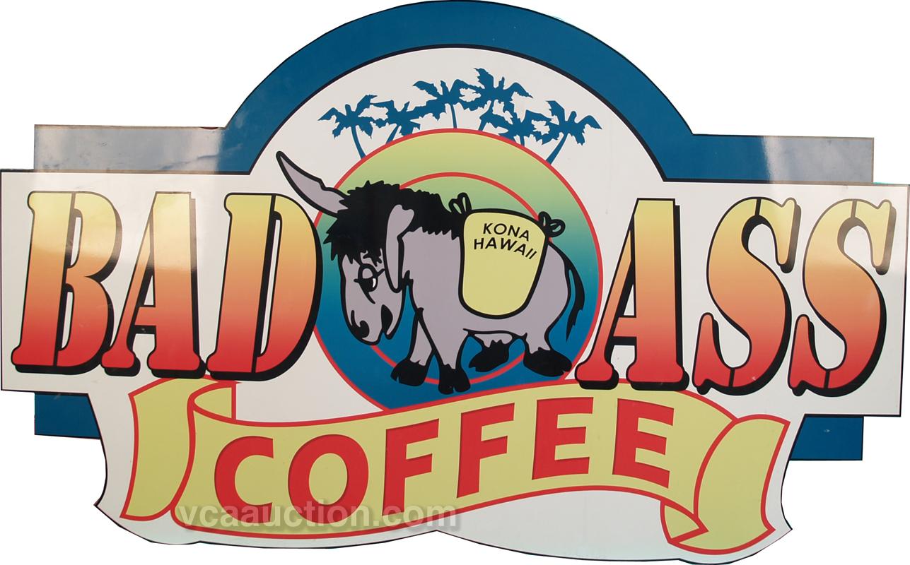 Large Metal Kona Hawaii "Bad Ass" Coffee Sign - 65" x 38"