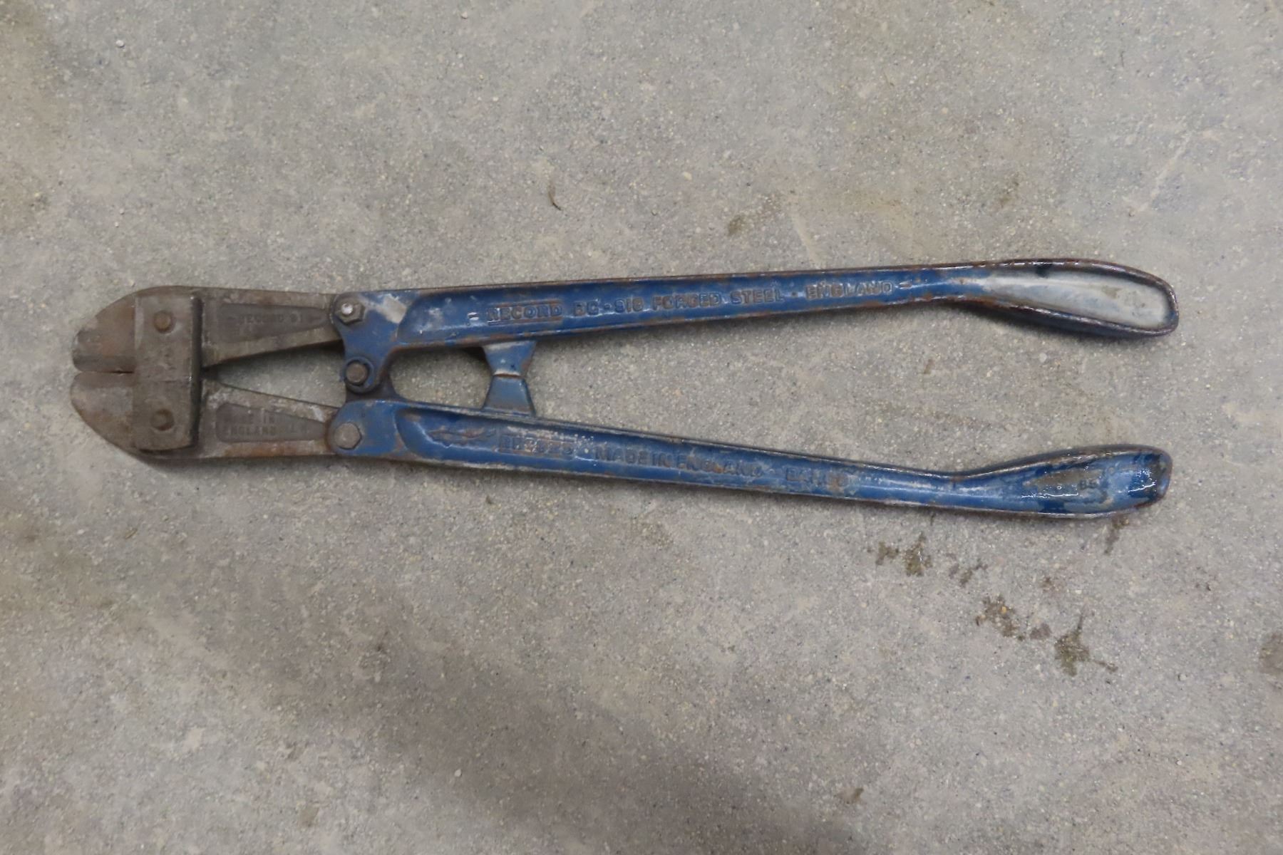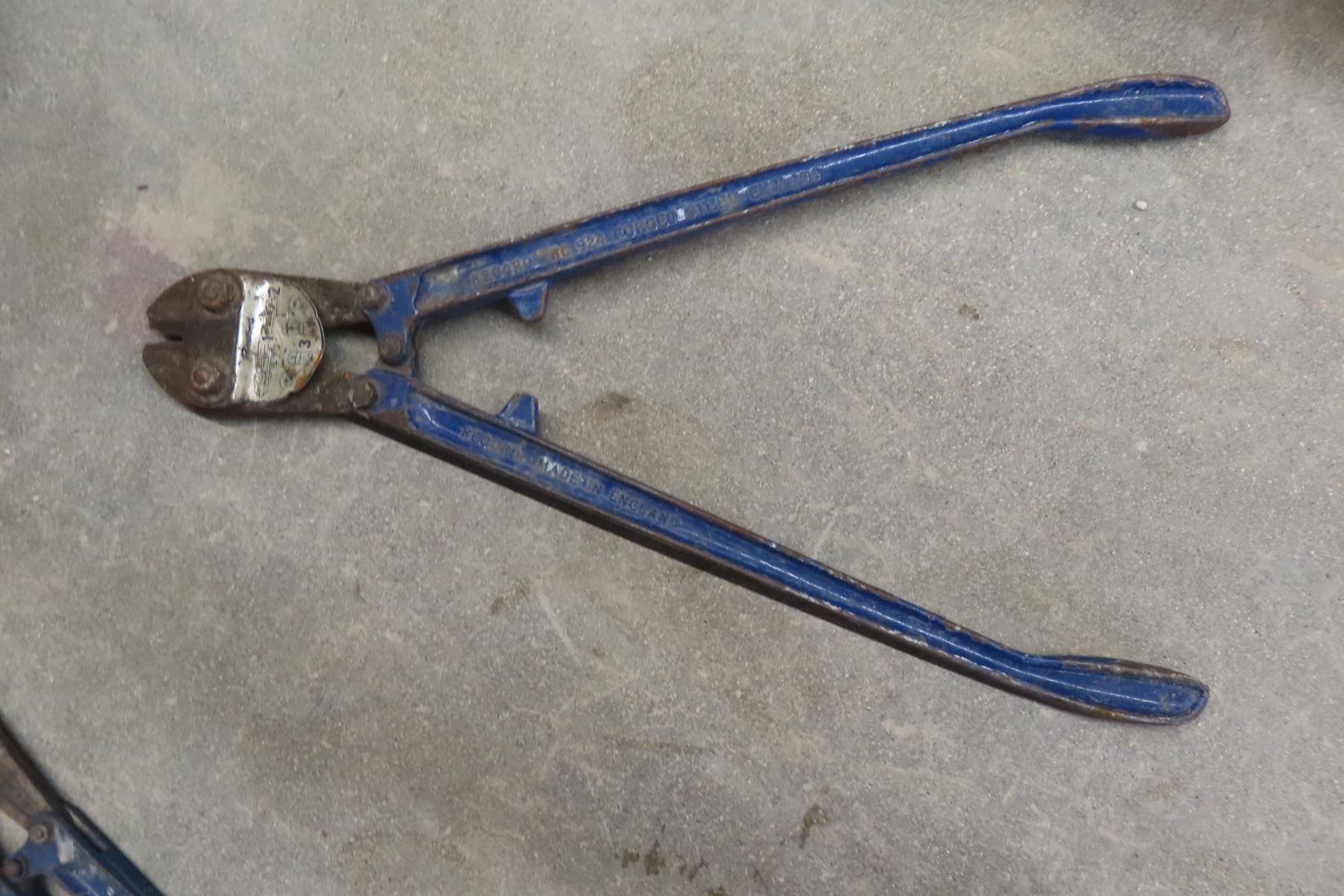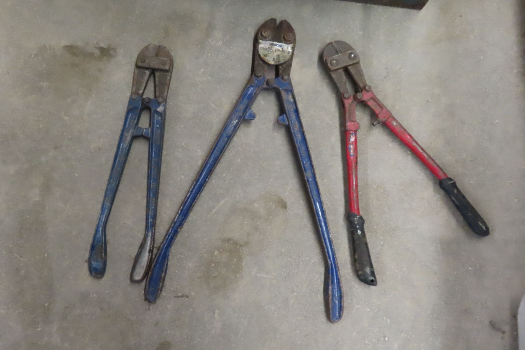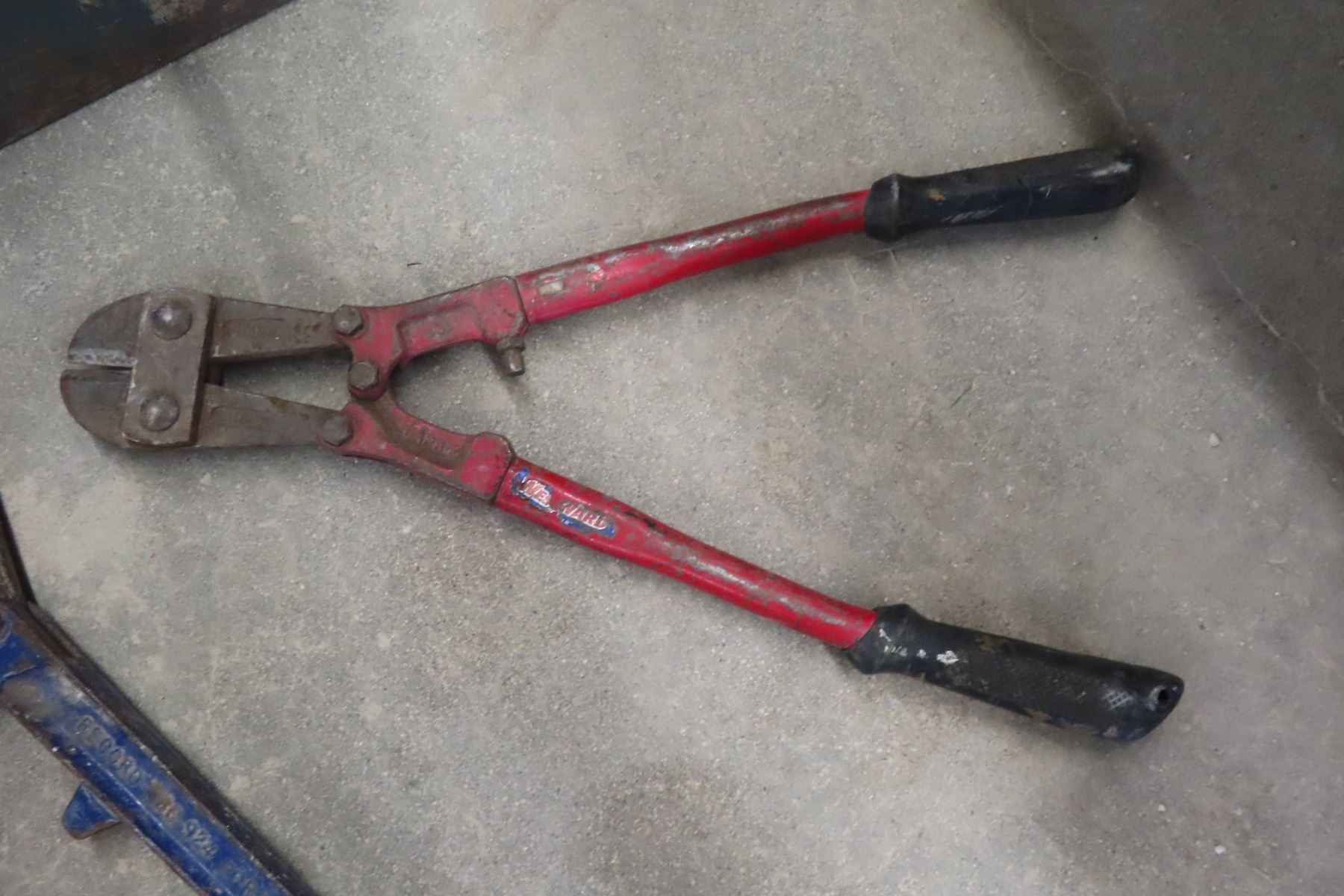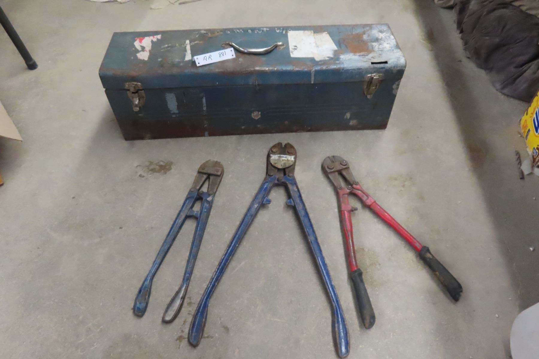 Large Metal Tool Box and 3 Pairs Bolt Cutters (Tool Box Doesn’t Open Fully)