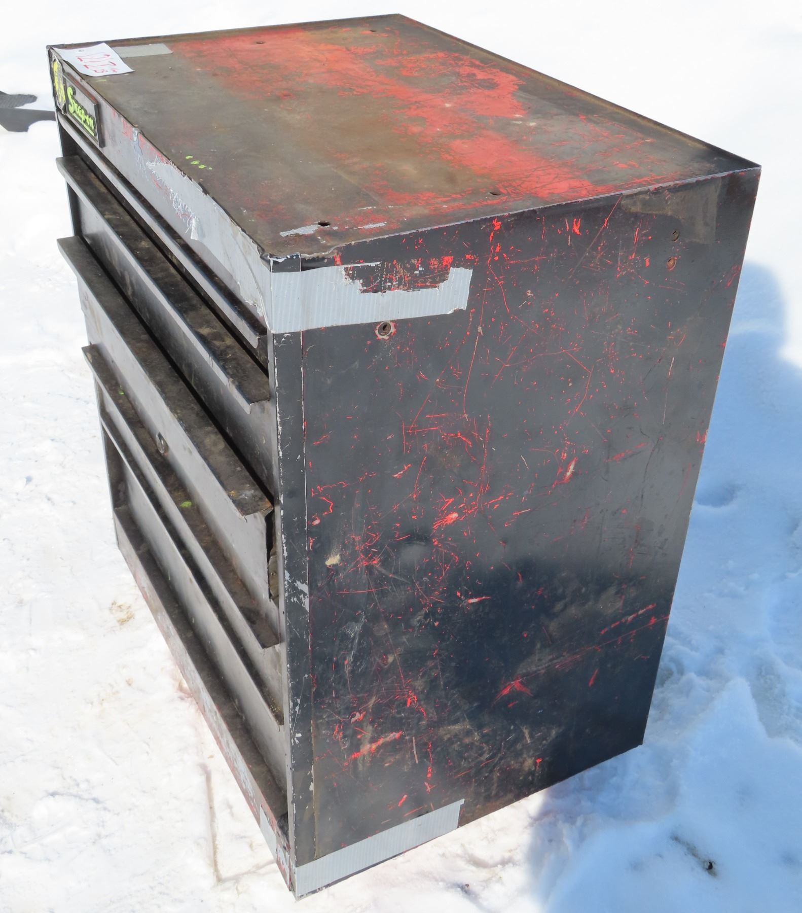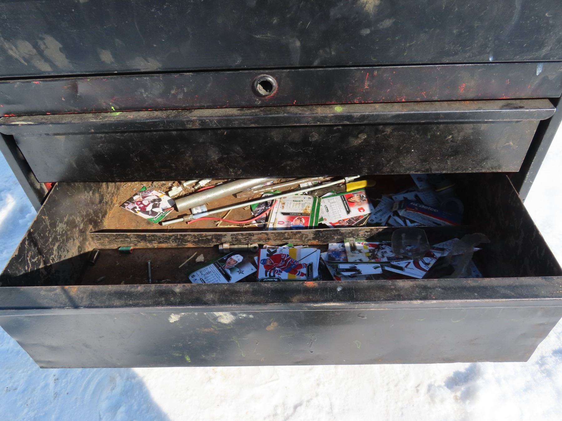 Large Metal tool box 26"x18"x28.5" with assorted tools, etc.