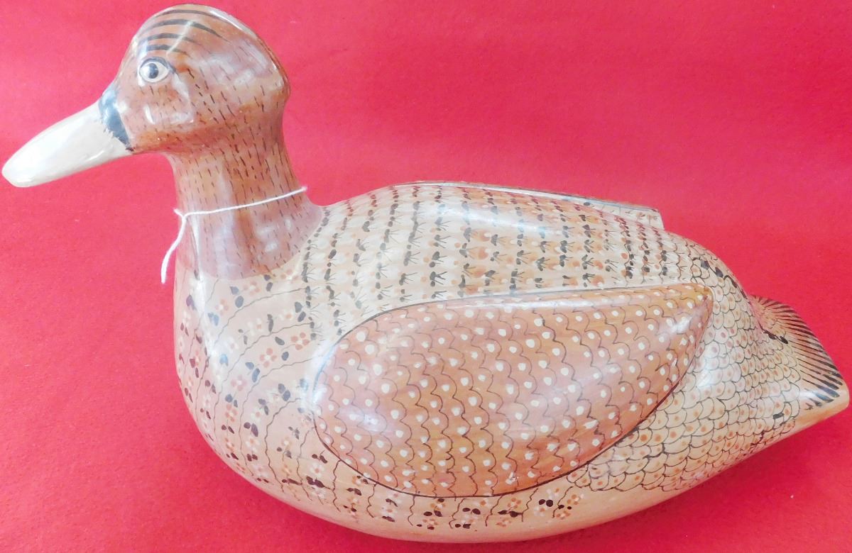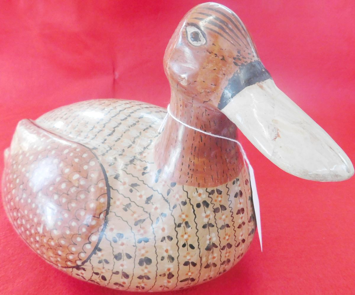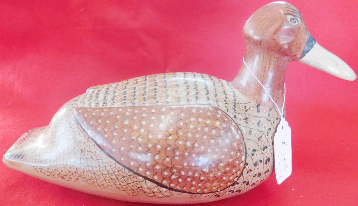 This duck is estimated to be from the 1960's and measures 16 x 9 x 7 inches. It is from Mexico City and is very nicely painted with tiny flowers on the body. Condition: Very good, see images. Shipping: $26.00
