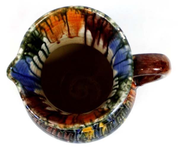 Large Mexican Drip Ware Pottery Pitcher, measures 9'' x 10'', chip in rim