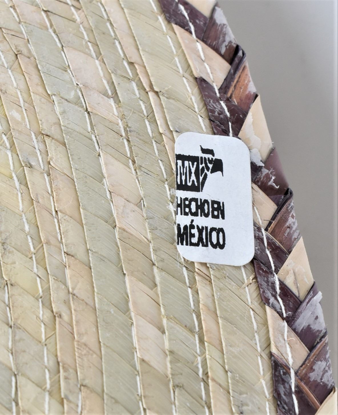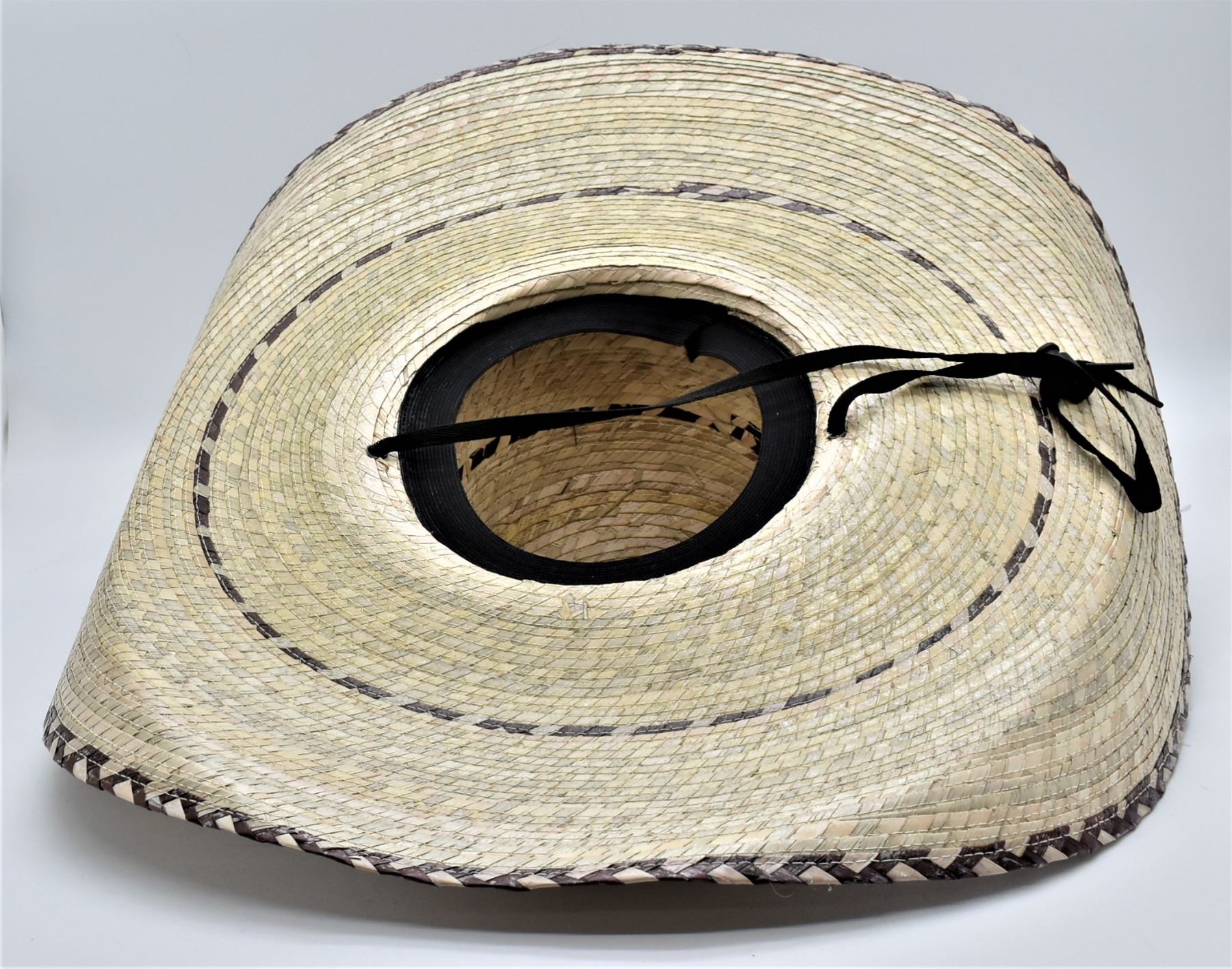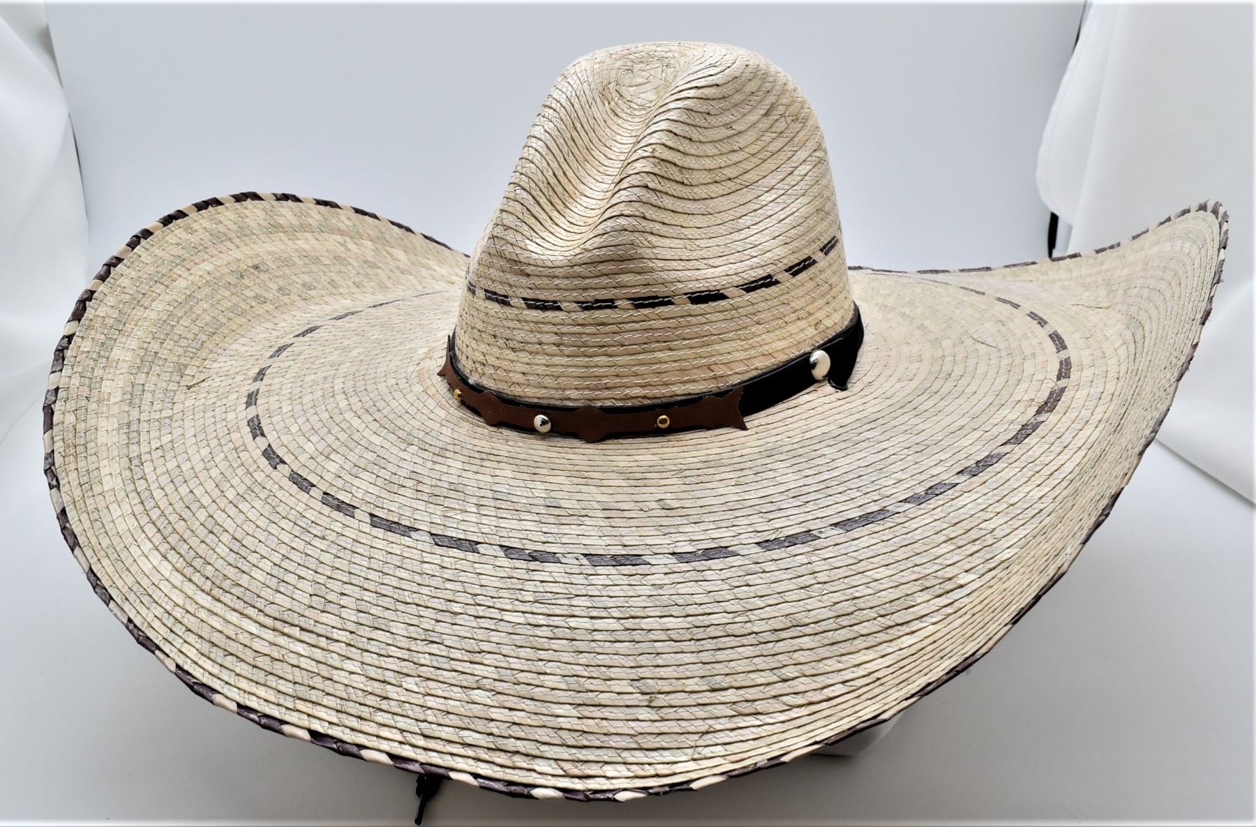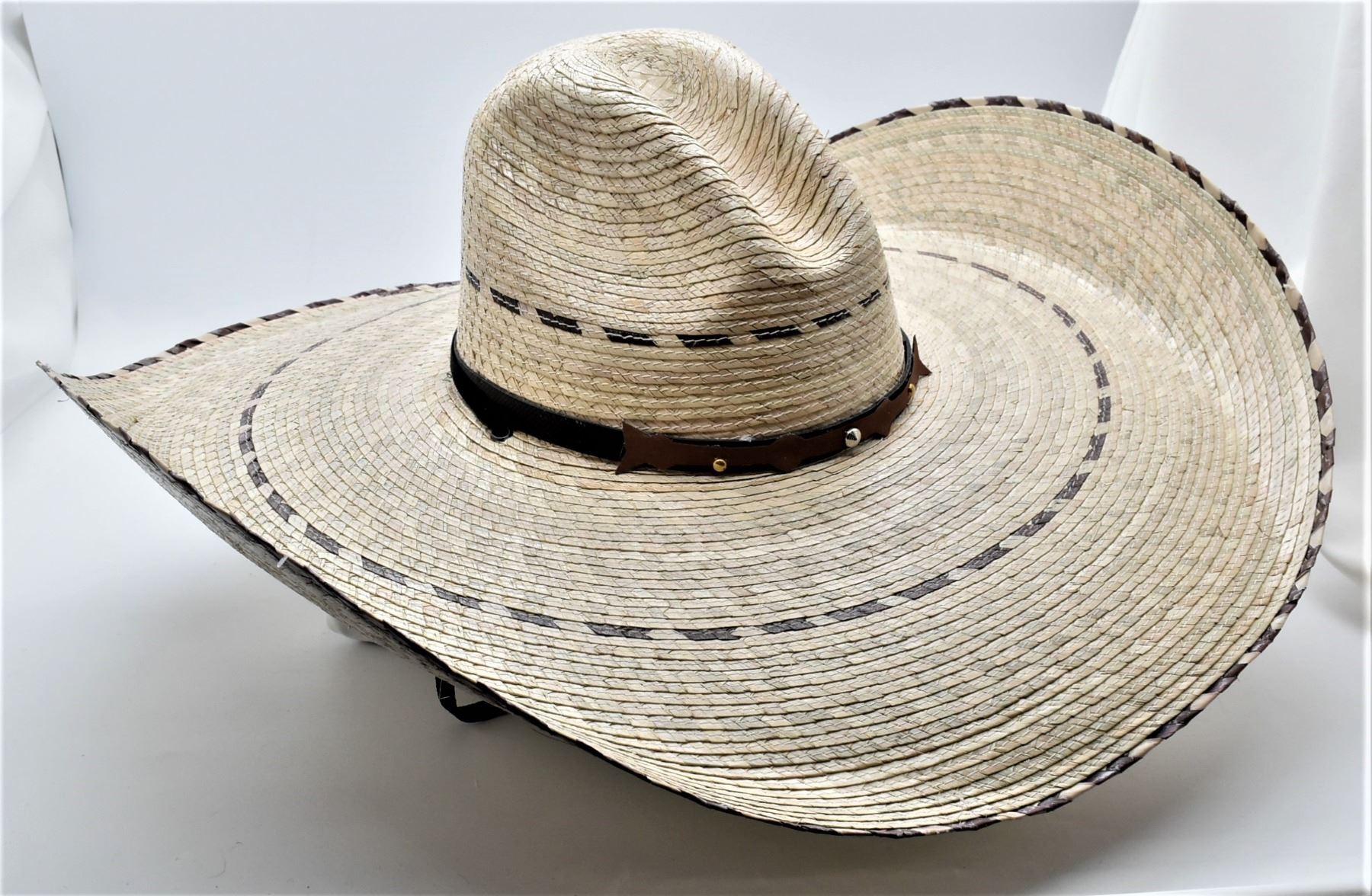 Large Mexican Straw Cowboy Hat, brim measures 21''L x 19''W, elastic around inside crown and adjustable stampede strap