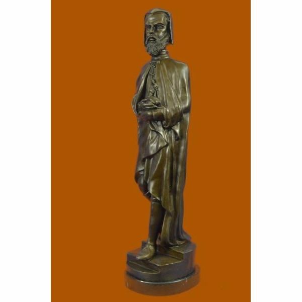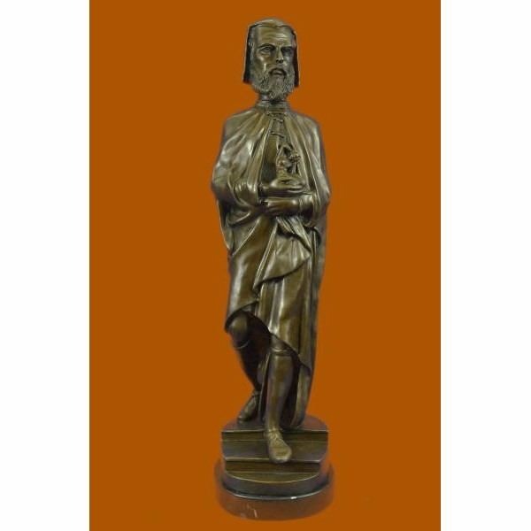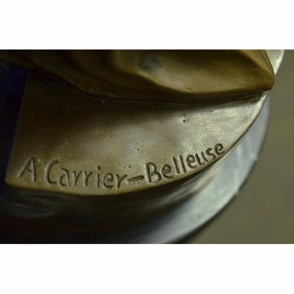 Michelangelo di Lodovico Buonarroti Simoni (6 March 1475 18 February 1564), commonly known as Michelangelo, was an Italian Renaissance painter, sculptor, architect, poet, and engineer. Despite making few forays beyond the arts, his versatility in the disciplines he took up was of such a high order that he is often considered a contender for the title of the archetypal Renaissance man, along with his rival and fellow Italian Leonardo da Vinci. Michelangelo's output in every field during his long life was prodigious; when the sheer volume of correspondence, sketches, and reminiscences that survive is also taken into account, he is the best-documented artist of the 16th century. Two of his best-known works, the Piet and David, were sculpted before he turned thirty. Despite his low opinion of painting, Michelangelo also created two of the most influential works in fresco in the history of Western art: the scenes from Genesis on the ceiling and The Last Judgment on the altar wall of the Sistine Chapel in Rome. As an architect, Michelangelo pioneered the Mannerist style at the Laurentian Library. At 74 he succeeded Antonio da Sangallo the Younger as the architect of Saint Peter's Basilica. Michelangelo transformed the plan, the western end being finished to Michelangelo's design, the dome being completed after his death with some modification. In a demonstration of Michelangelo's unique standing, he was the first Western artist whose biography was published while he was alive. Two biographies were published of him during his lifetime; one of them, by Giorgio Vasari, proposed that he was the pinnacle of all artistic achievement since the beginning of the Renaissance, a viewpoint that continued to have currency in art history for centuries. In his lifetime he was also often called Il Divino ("the divine one"). One of the qualities most admired by his contemporaries was his terribilit, a sense of awe-inspiring grandeur, and it was the attempts of subsequent artists to imitate Michelangelo's impassioned and highly personal style that resulted in Mannerism, the next major movement in Western art after the High Renaissance. The sculpture was molded by using the lost-wax casting method and finished with brown patina tarnish allowing intricate work to come through the precious metal. This is an exquisite three-dimensional work of art for anyone who is Carrier Belleuse enthusiast. Condition: This sculpture is in a very Good condition. Bronze Dimensions with Marble Base:Height 23" x Width 7" Marble Dimensions:Diameter 7" Height without base: 22" Weight :24 LBS Inventory : 62FT02316126