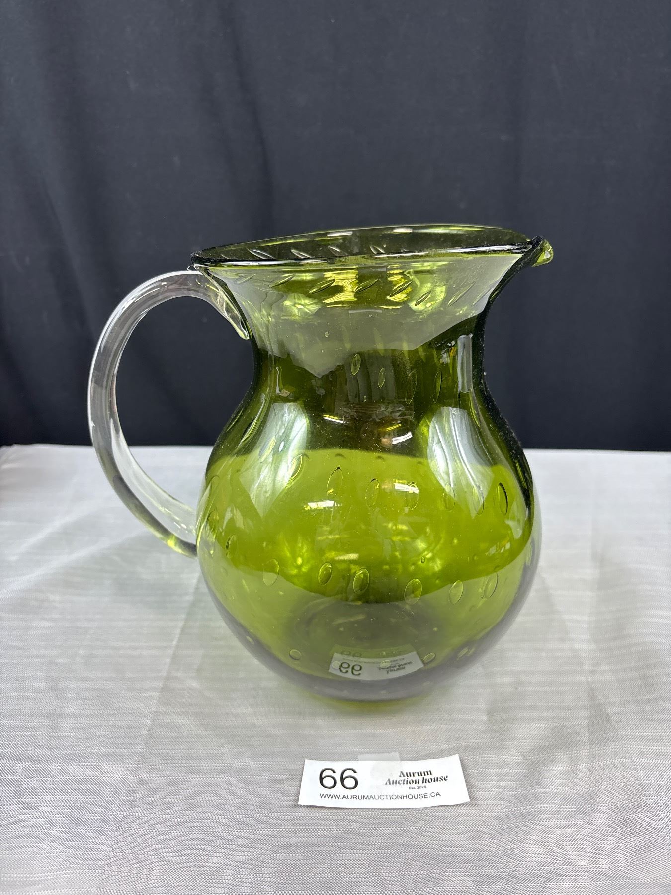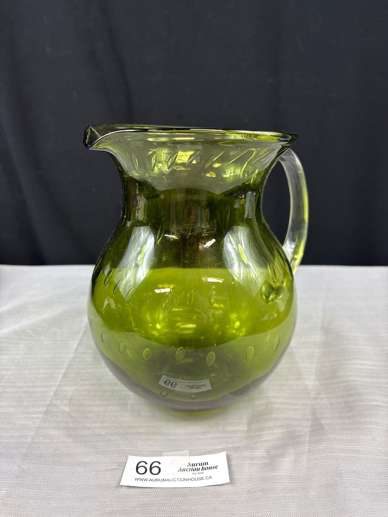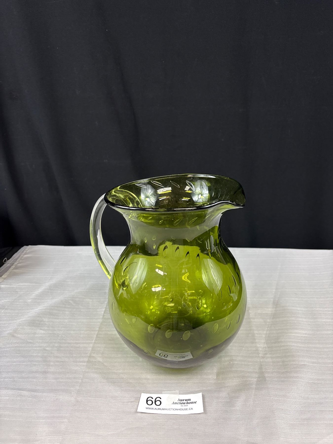 Large Mid Century Modern Green Glass Water Jug Approx 9" Tall