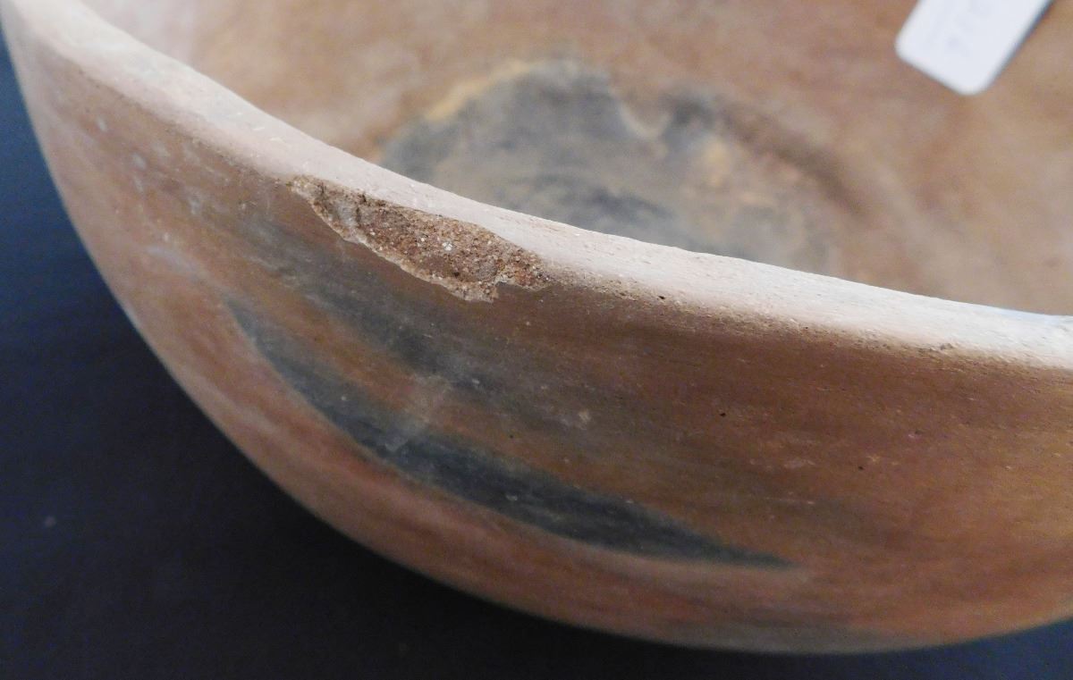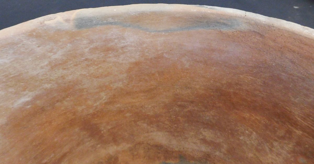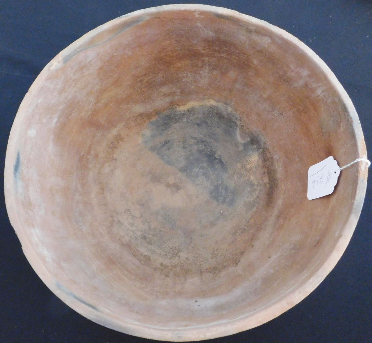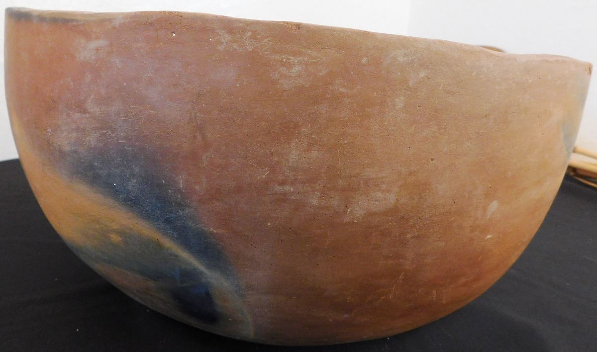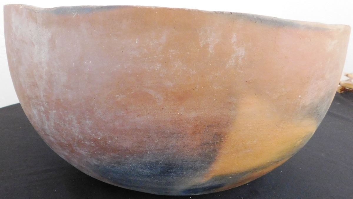 Large Mission Pottery Bowl, 20th century, made of clay. Item measures 14.5" x 7". San Diego County, California, Mission Indians. This is a fine, large cooking bowl in beautiful condition. Condition: Very good, see images. Shipping: $50.00, requires double-box.