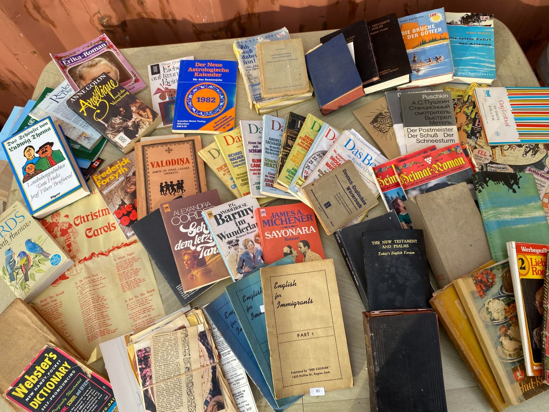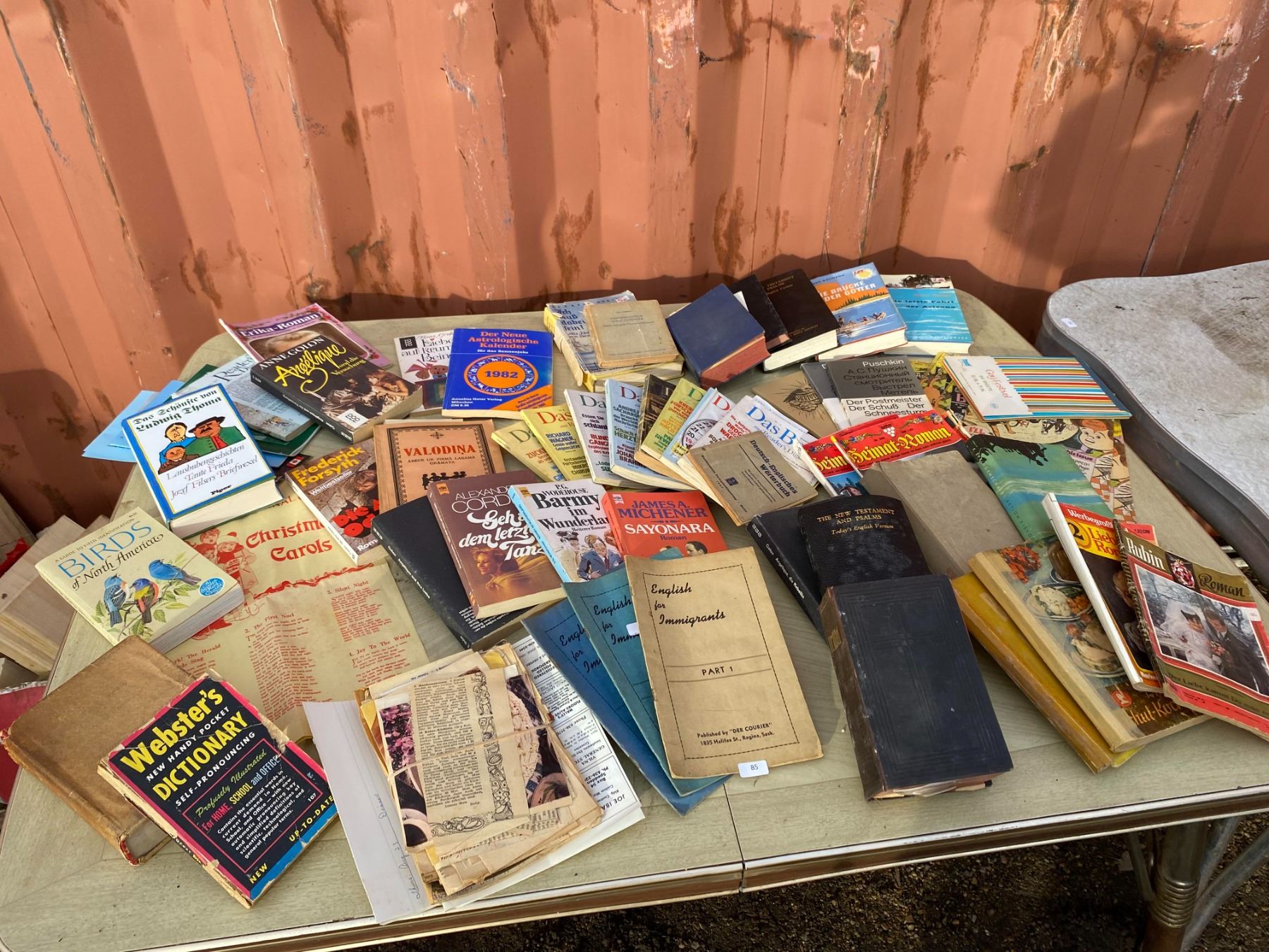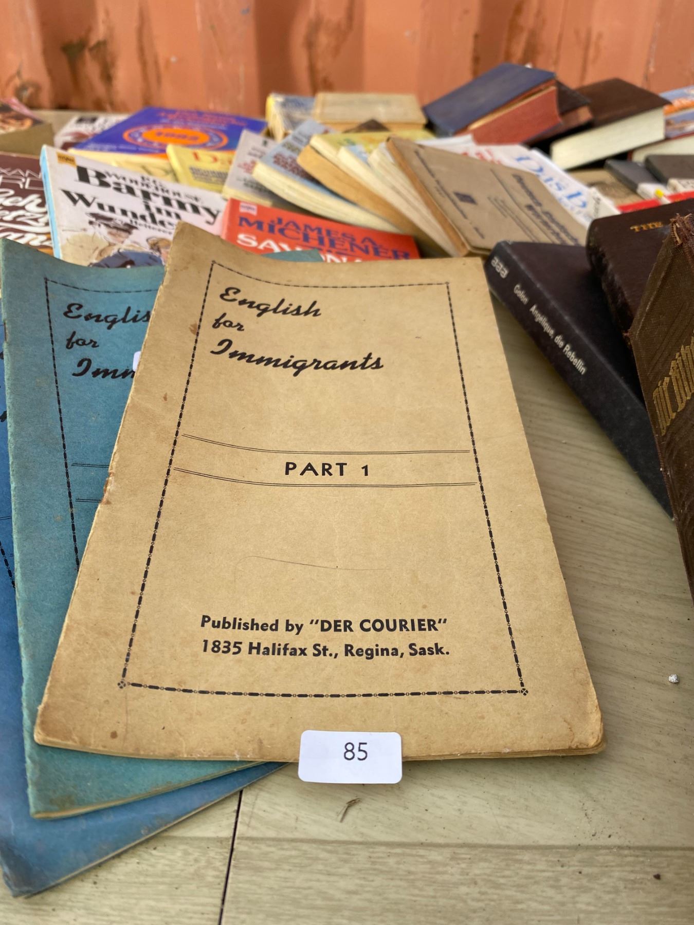 Eclectic assortment of vintage books, manuals, songbooks, foreign language texts, and paper ephemera. Perfect for readers, crafters, and collectors.