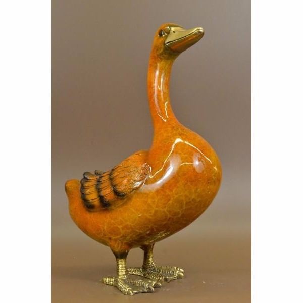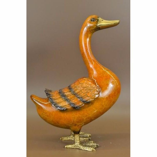 Delightful Duck Bronze Sculpture, After J. Moigniez .This bronze sculpture was produced using the Lost Wax casting method. The Lost Wax Cast method is the most precise metal casting technique in existence, ensuring exquisite detail of the original host model which is usually sculpted in clay or wax. This Lost Wax casting method is an extremely labor intensive and expensive process, but the end results produce a Heirloom Quality Masterpiece! Condition: This sculpture is in perfect condition. Bronze Dimensions :Height 17" x Width 15" Weight :9 LBS Inventory : 45-56622NA10554
