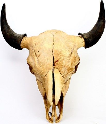 with horn caps measuring 20" long. Includes mounted chain for wall hanging. Est. 200-350