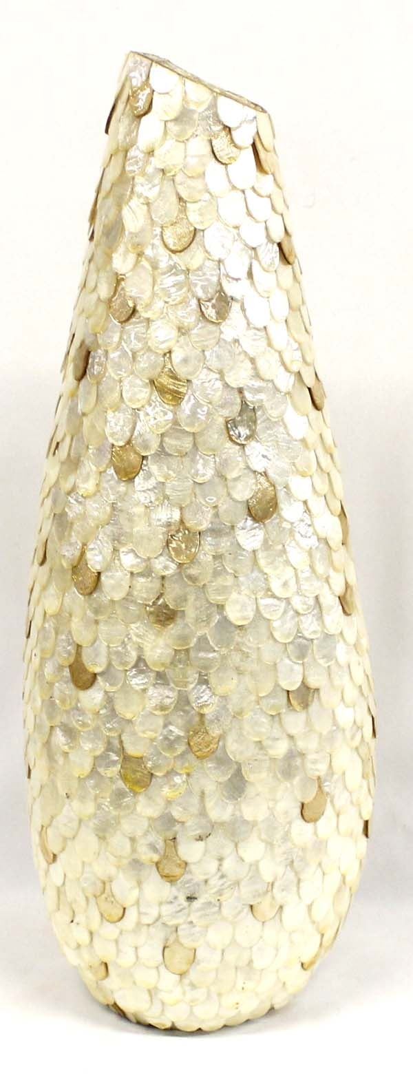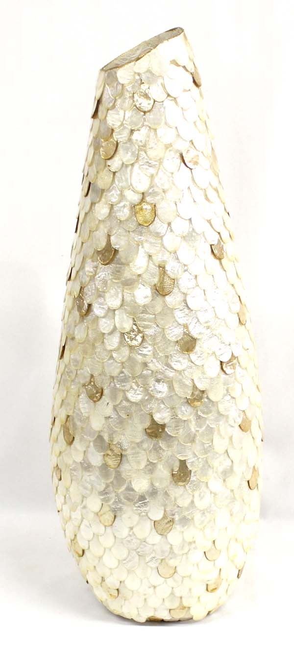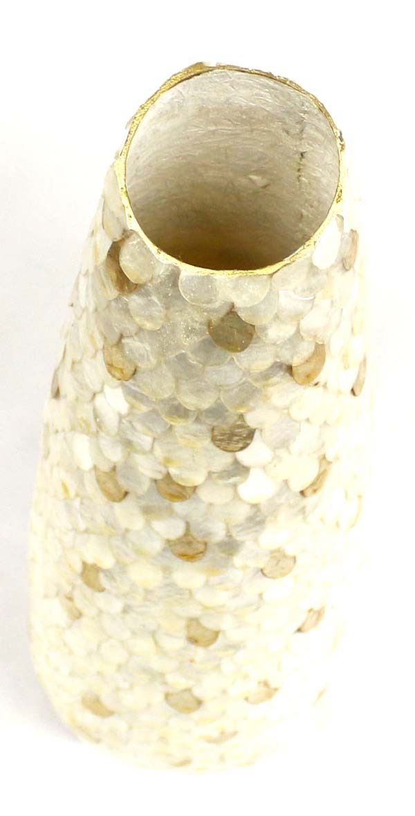Large Mother of Pearl Shell Vase, measures 6'' x 16''