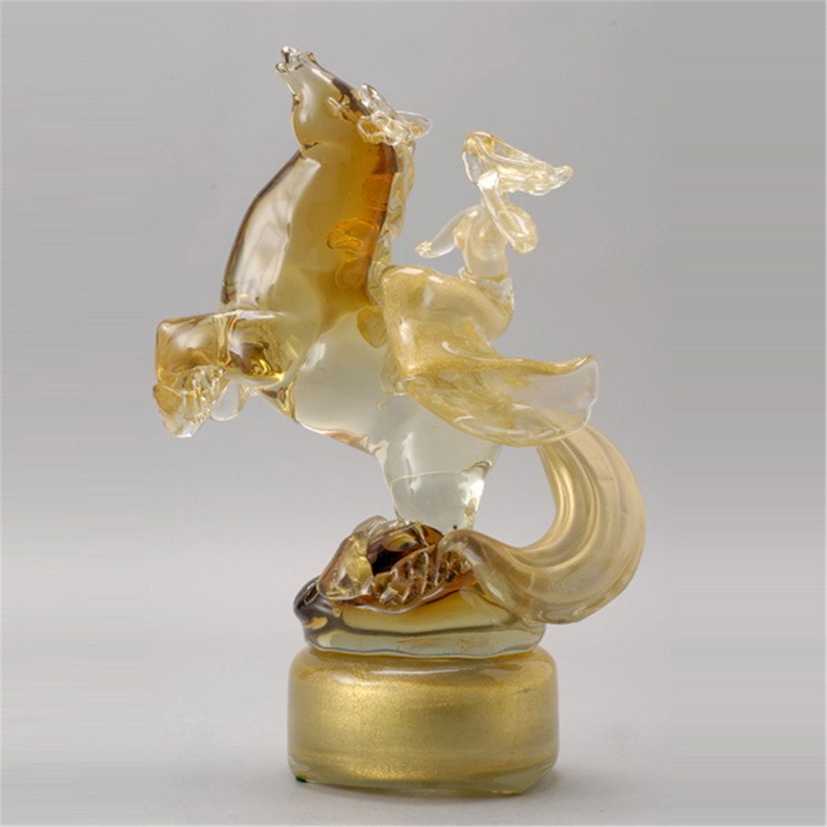 Large Murano Glass Figure of a Woman on a Rearing Horse, with base {Height including base 16 1/2 inches}