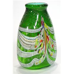 Large Murano multi-coloured bubble glass vase decorated in greens, blues, whites etc. 27cm high