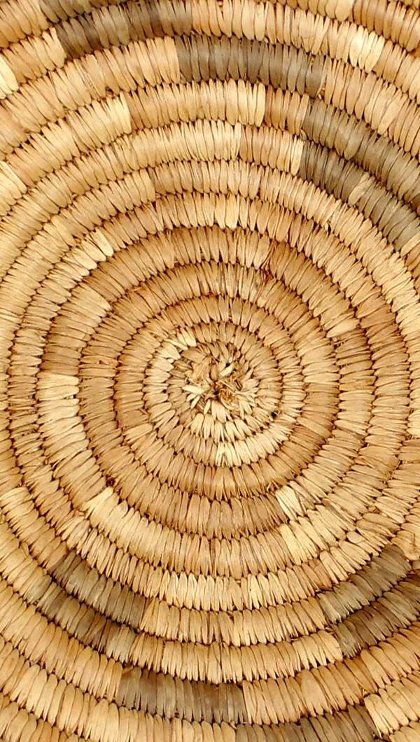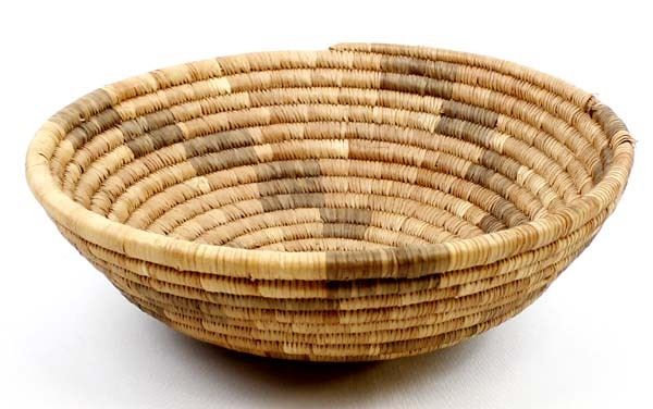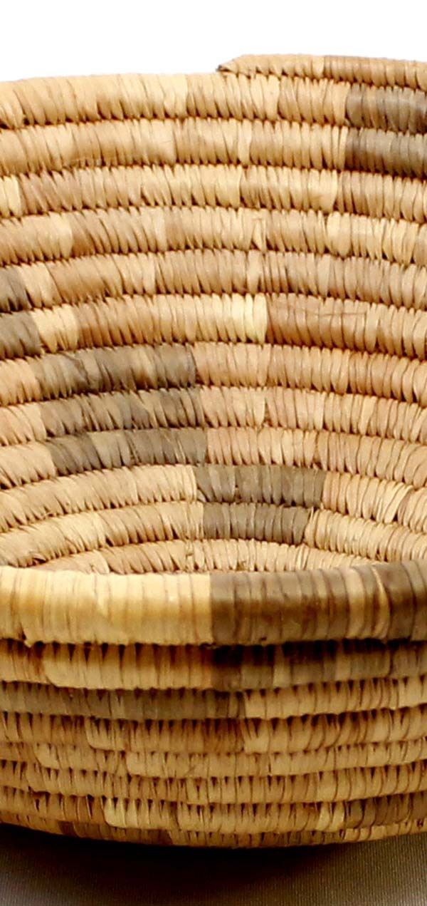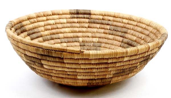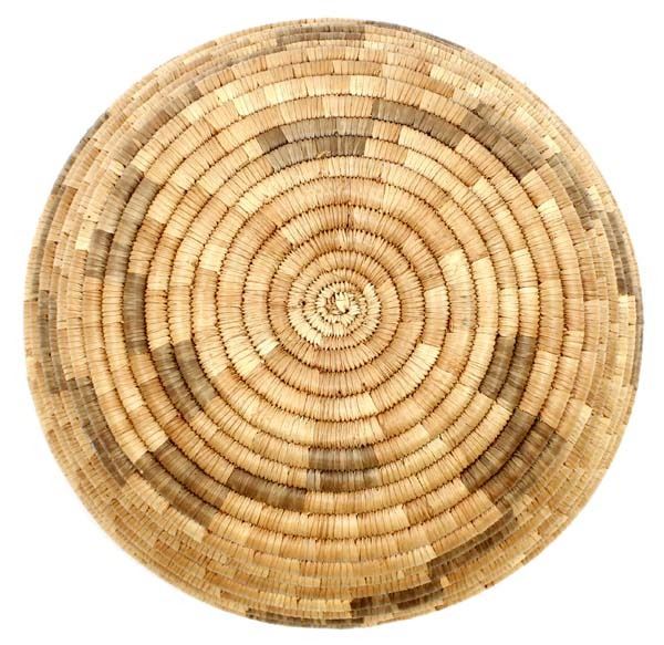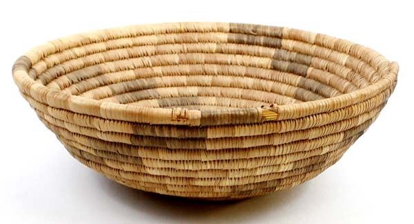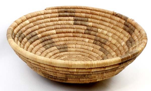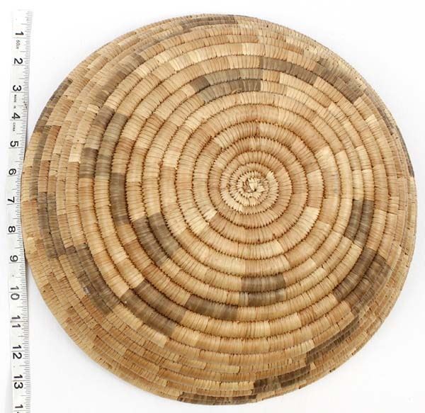 Large Native American Hopi Basket, measures 4.5'' x 13.5''D, some loose fibers on rim in one area, stairstep designs