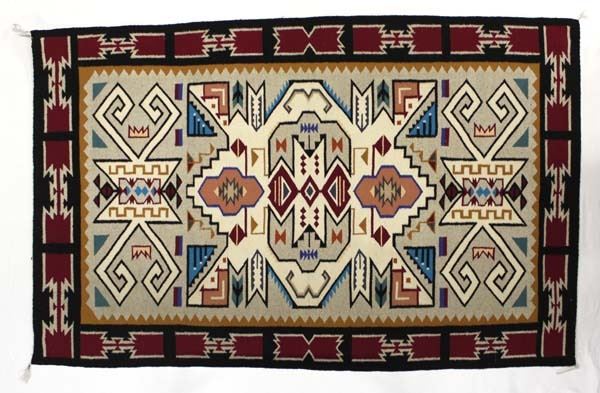 Large Native American Navajo Wool Textile Rug, 4 cornered tassels intact, measures 70'' x 44.5'', stunningly beautiful colors