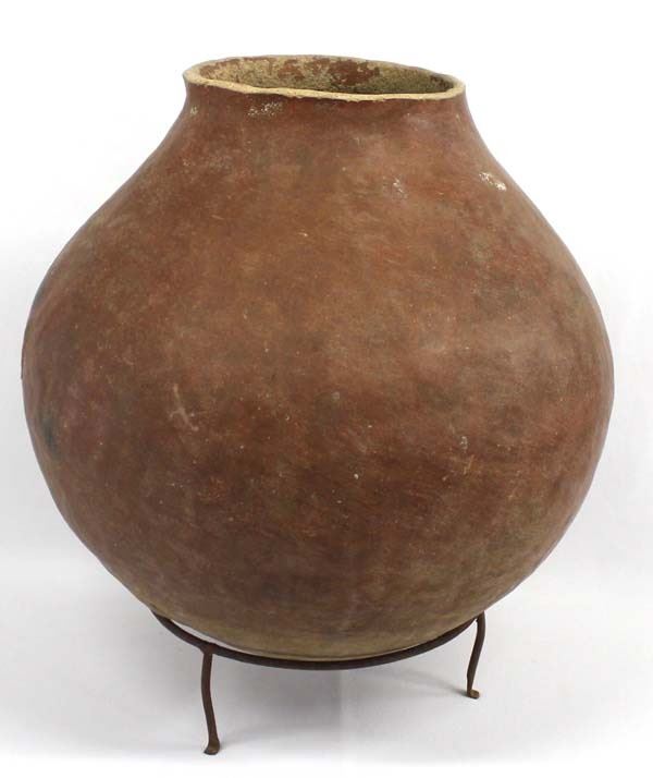 Large Native American Pottery Olla, measures 17'' x 17'', vintage, heavy, small hole in side, utilitarian piece
