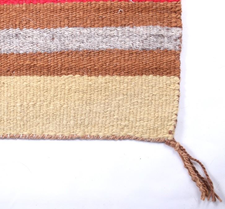 For your consideration is a large Navajo hand woven Chinle rug. This hand made rug was constructed from a Navajo loom. Chinle vegetable dyed rugs get their colors from plants, roots, trees, bark and nuts. This rug displays a symmetrical pattern, with a chevron border encompassing the Chinle Stars that run vertically throughout the pattern. Tag on the rug indicates this rug comes from Canyon de Chelly trading post in Arizona. The rug is in good shape and measures 79" x 58.5".