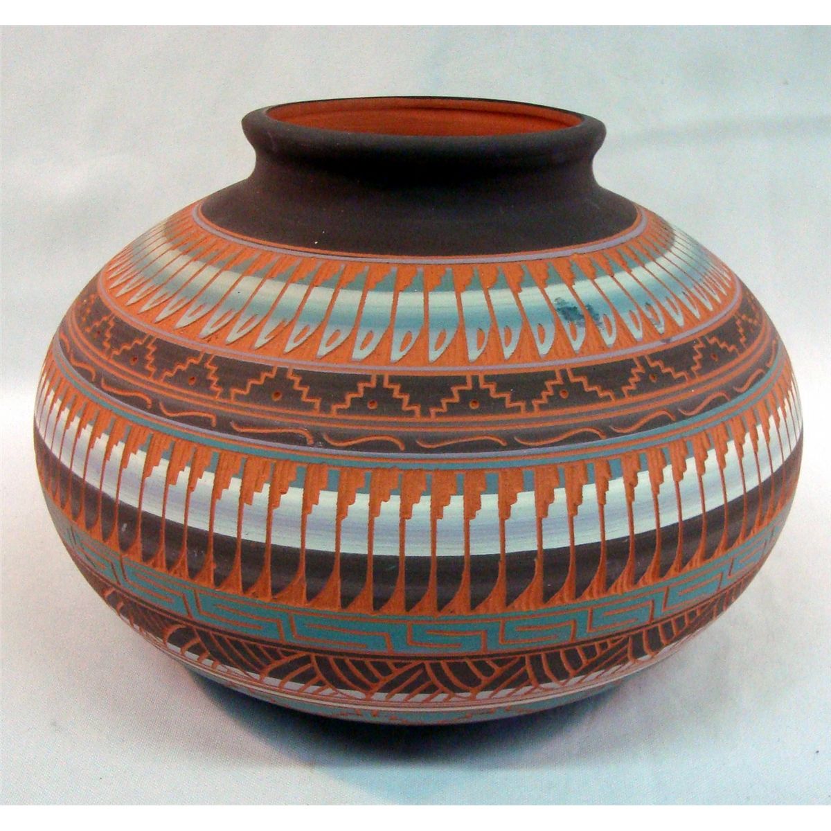 Large Navajo Jar Signed on the bottom by the artist. Measures approx. 6 1/2''H x 9''W.
