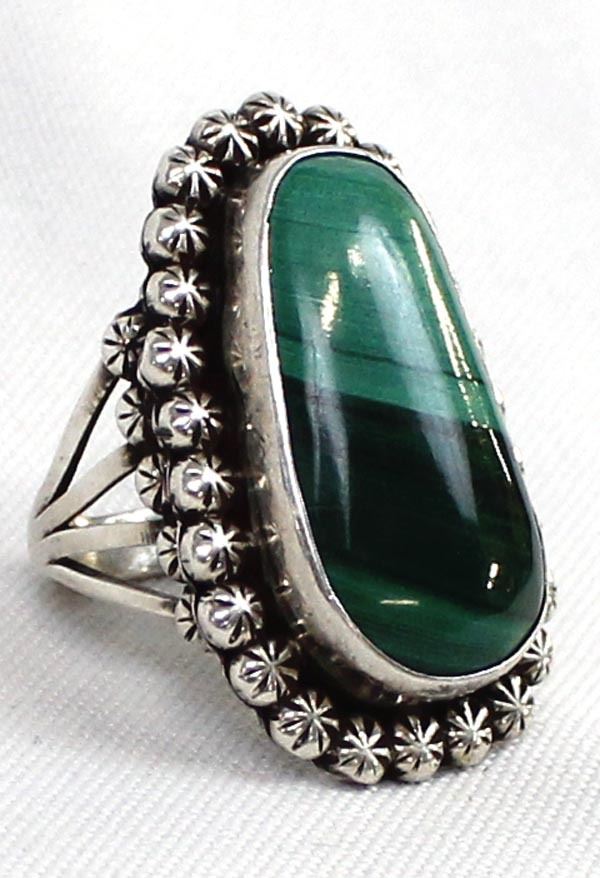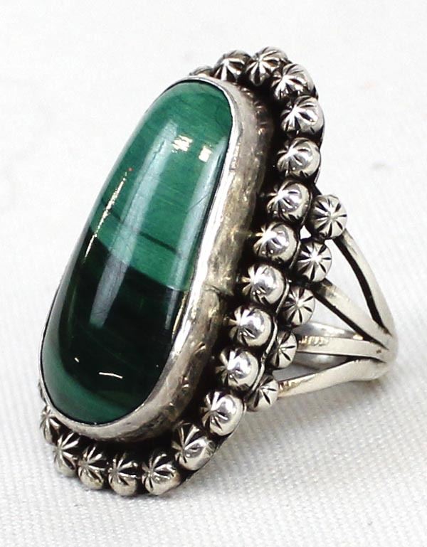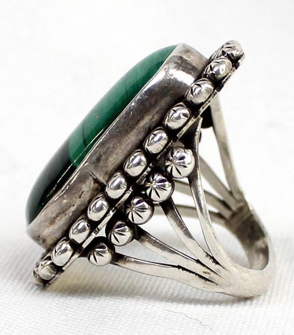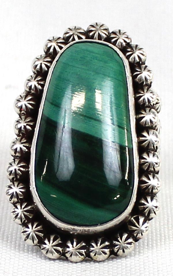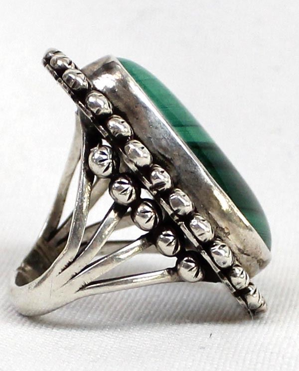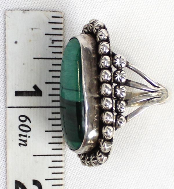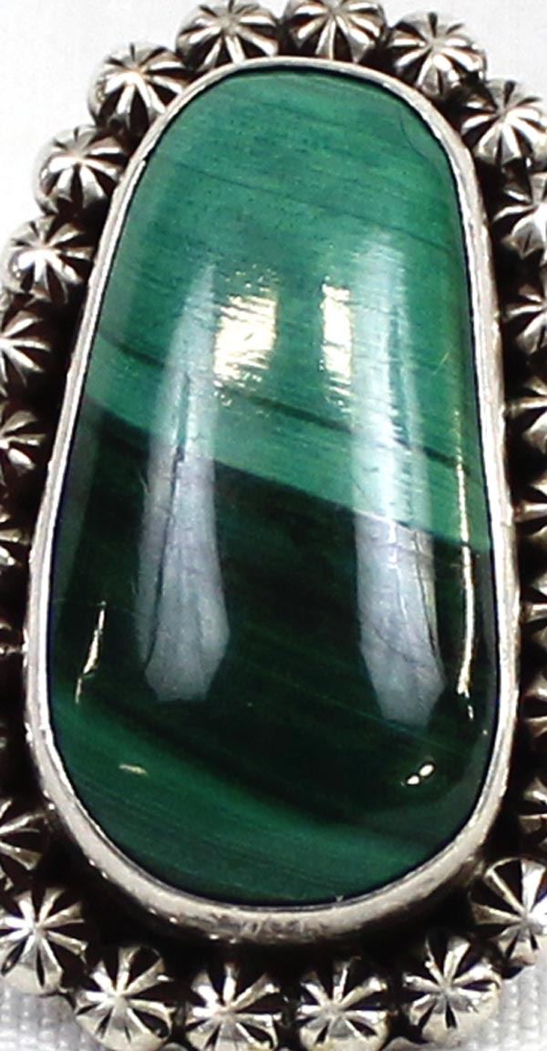 Large Native American Navajo Sterling Malachite Ring, Size 9, measures 1.5''L x 1''W, total gram wt. of 20.94, gorgeous banded malachite cabochon