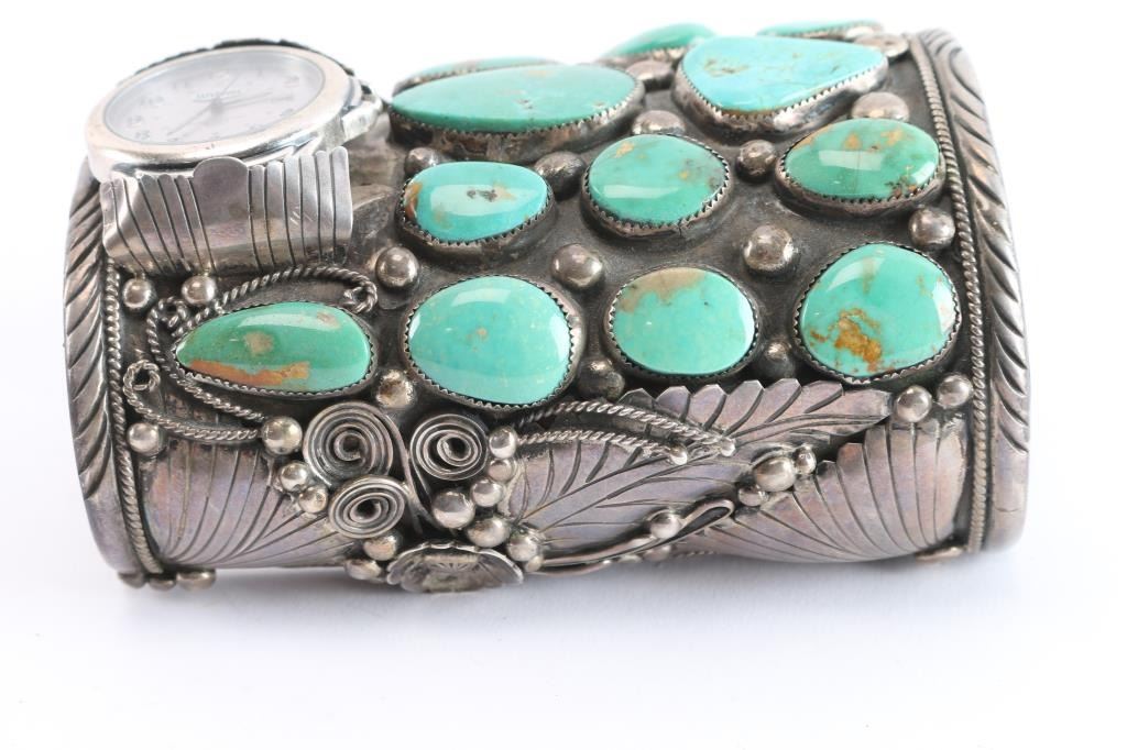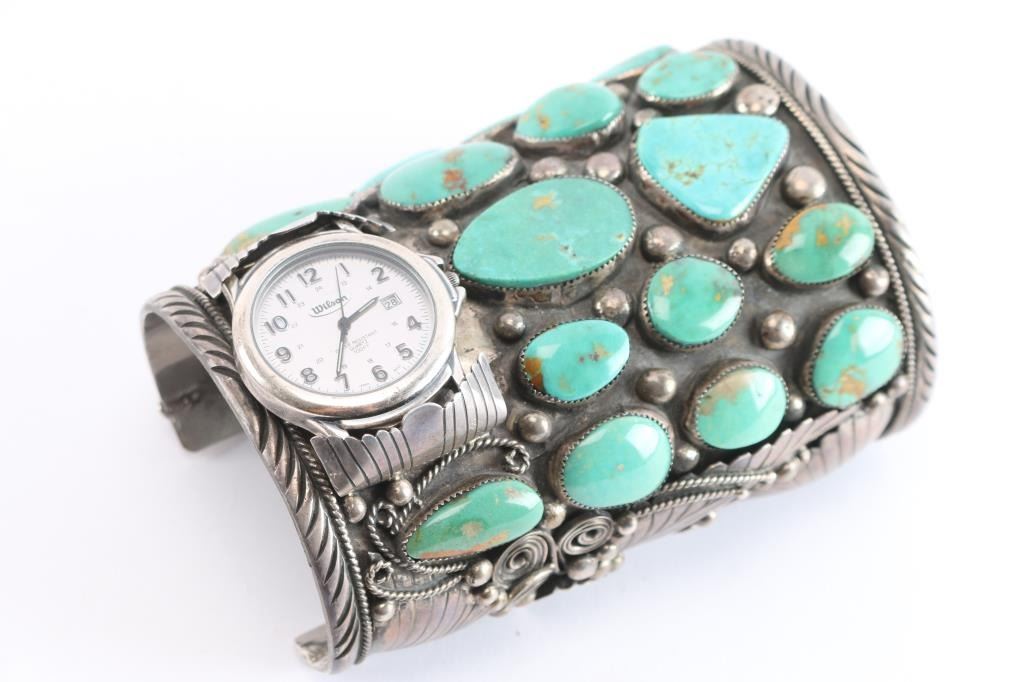 Large Navajo Sterling & Turquoise Watch Cuff.